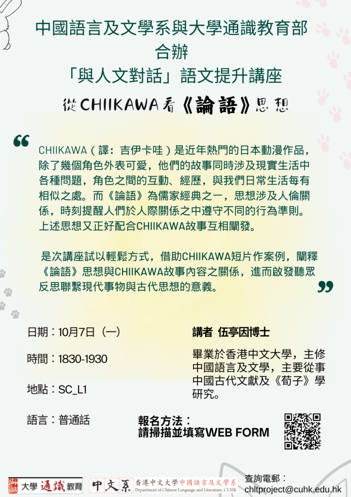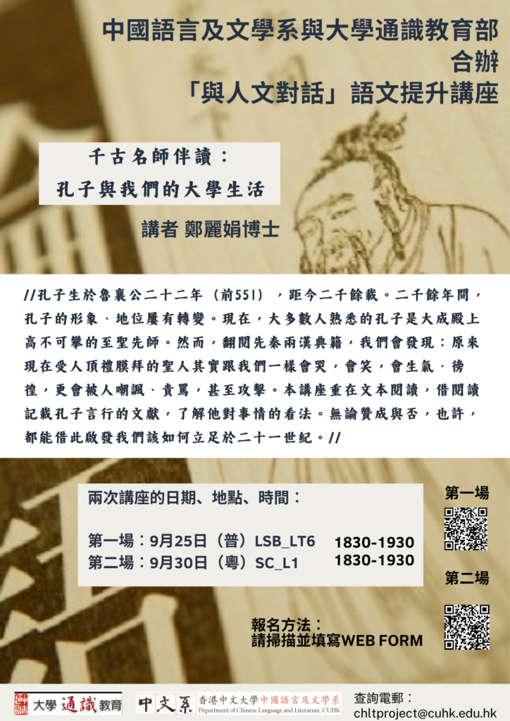 本系與大學通識教育部將於本學期舉辦五場「與人文對話」語文提升講座,歡迎修讀「UGFH1000 與人文對話」的同學參與!