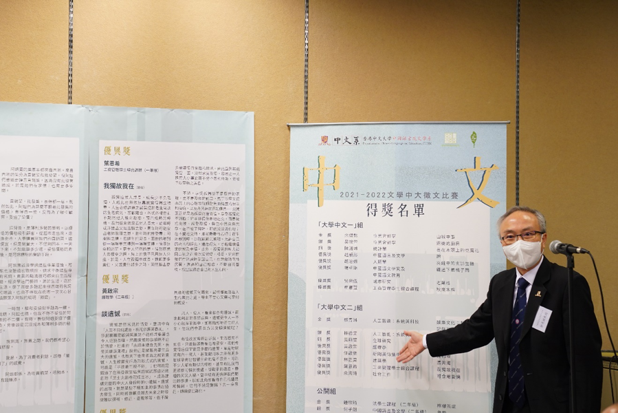 邓思颖教授致辞时指,“文学中大”自二零一五年开始推出以来得到在读学生和校友热烈支持,中国语言及文学系举办这个征文比赛的目的,就是希望通过非形式教育的方式,推动写作风气,提升语文水平。借此机会,邓教授勉励大家多关心身边事物,以文字记下来,以文学丰富生命。