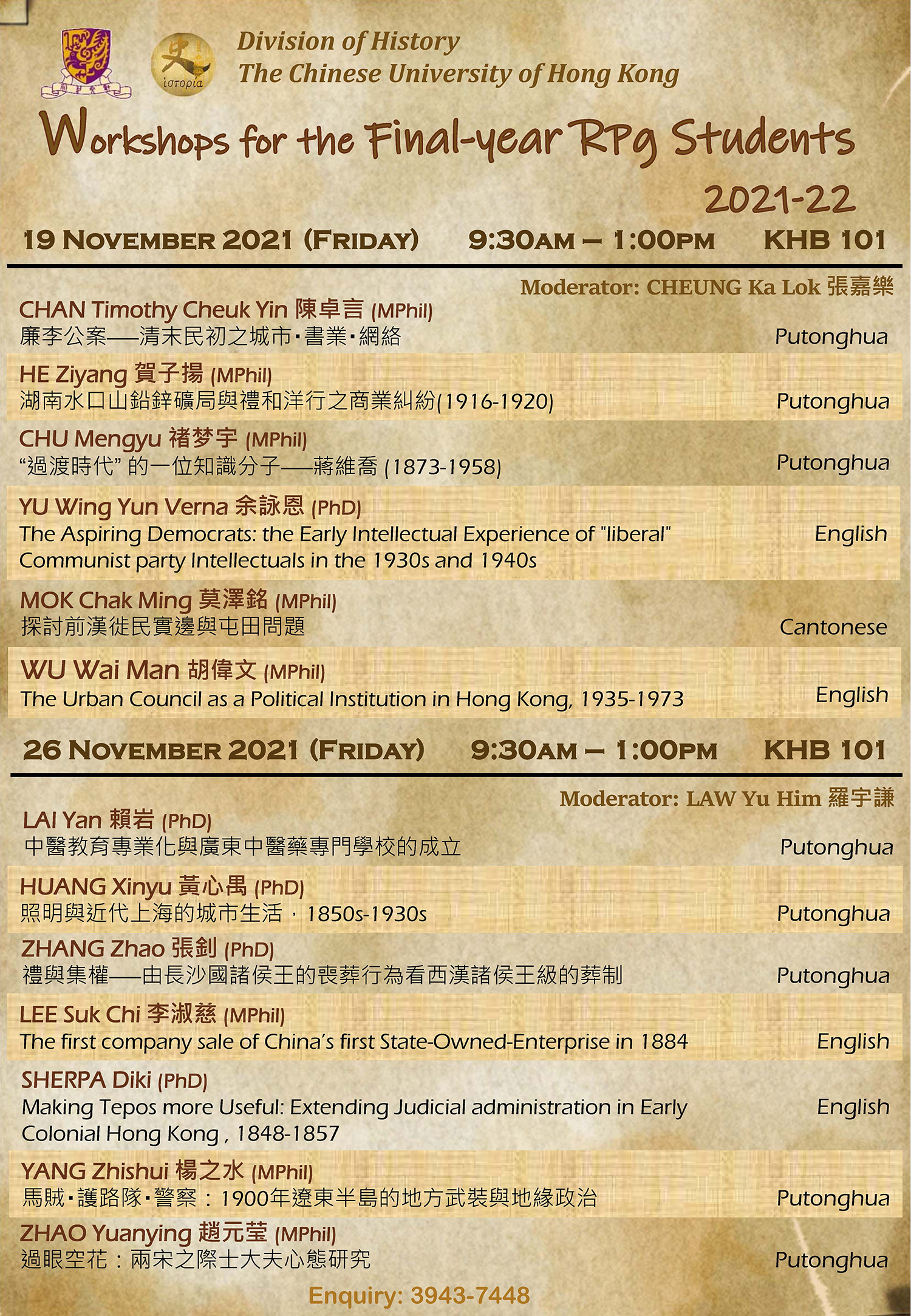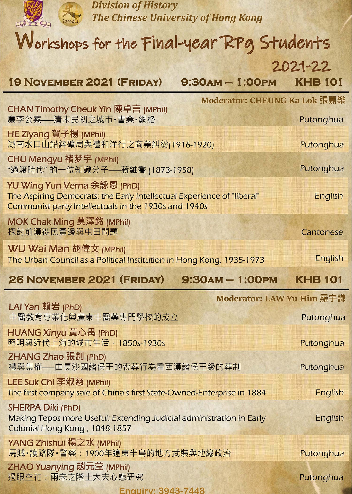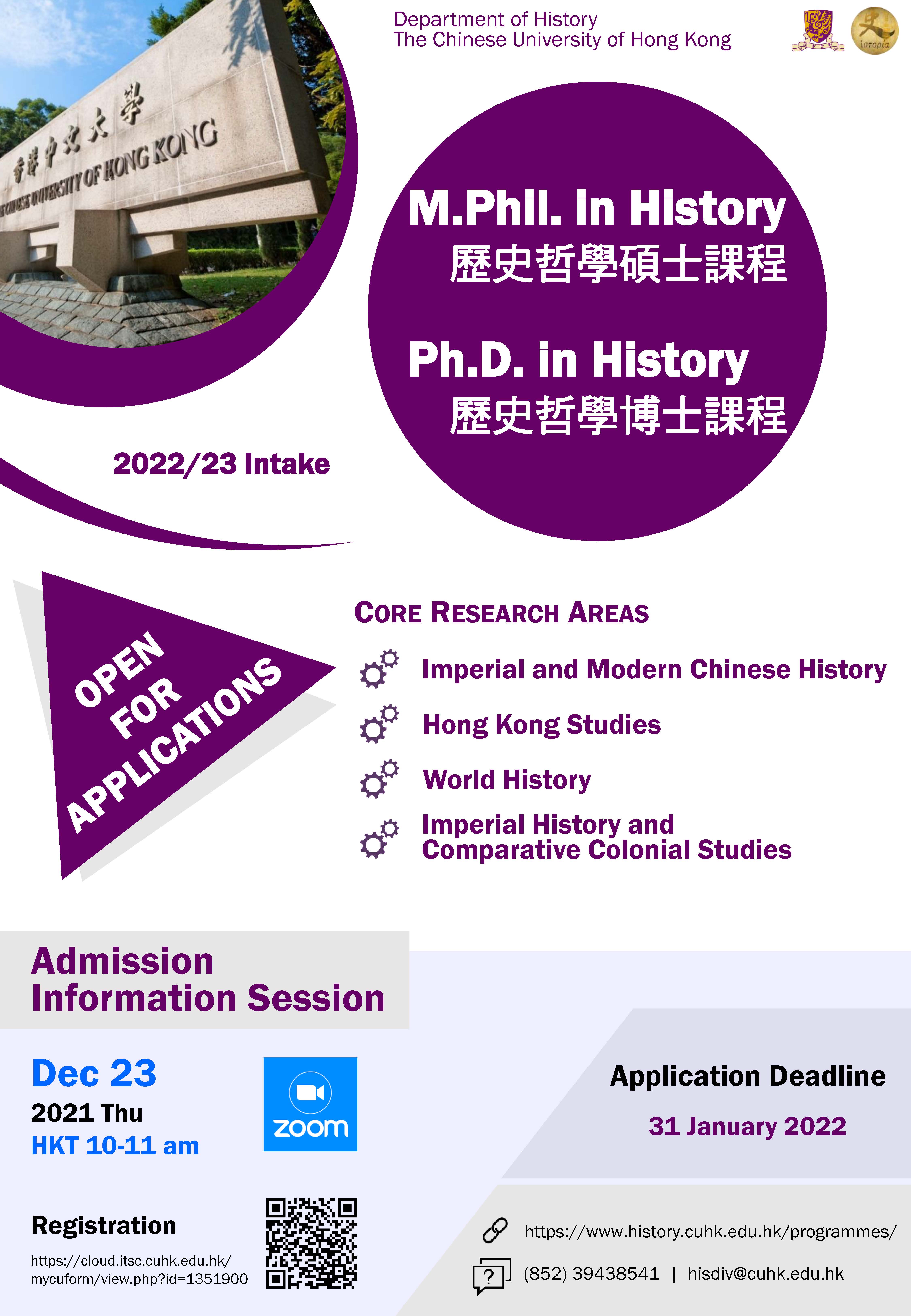 Admission Information Session for M.Phil. & Ph.D. in History