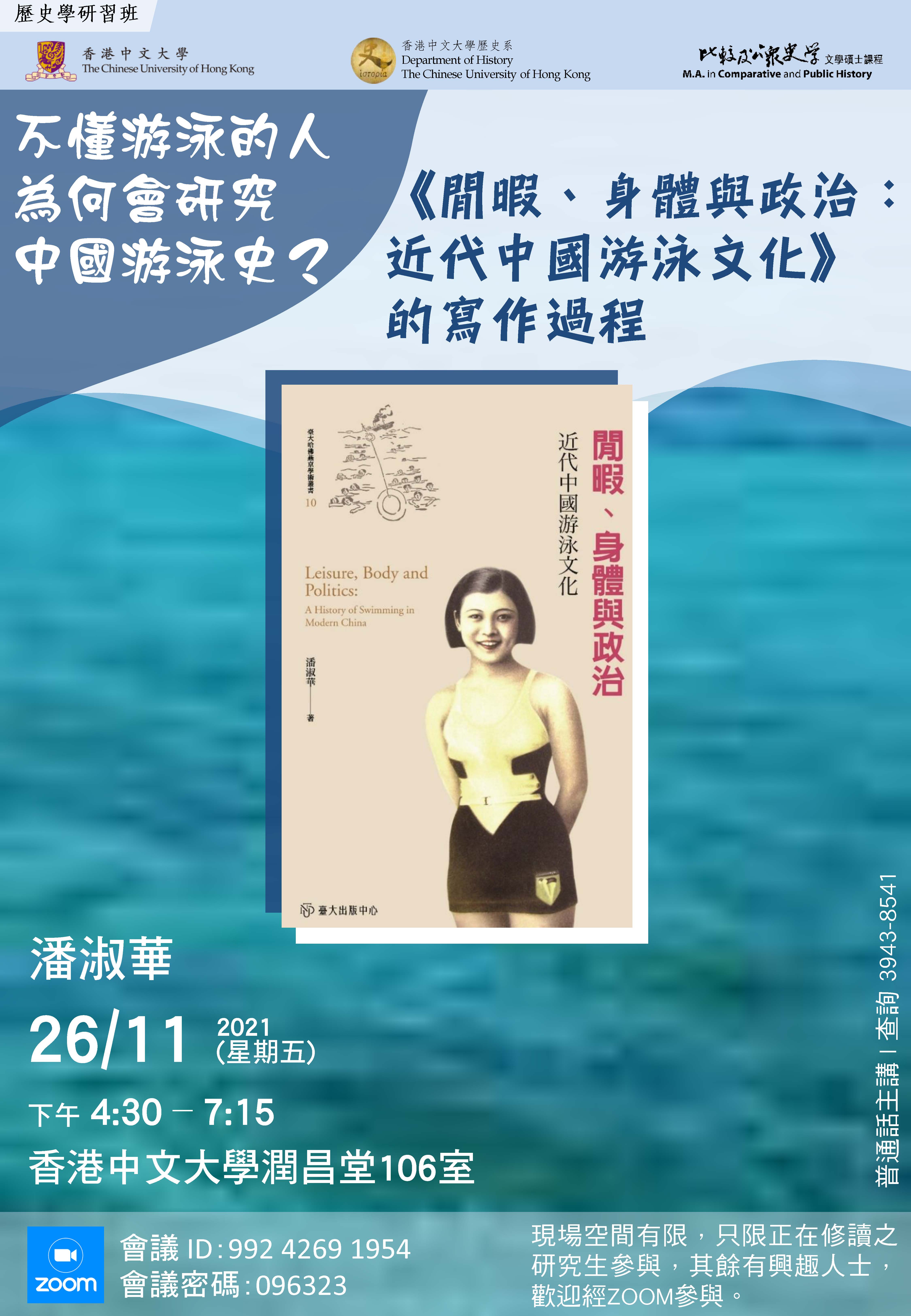 Graduate Seminar on Historiography: 不懂游泳的人為何會研究中國游泳史?《閒暇、身體與政治:近代中國游泳文化》的寫作過程