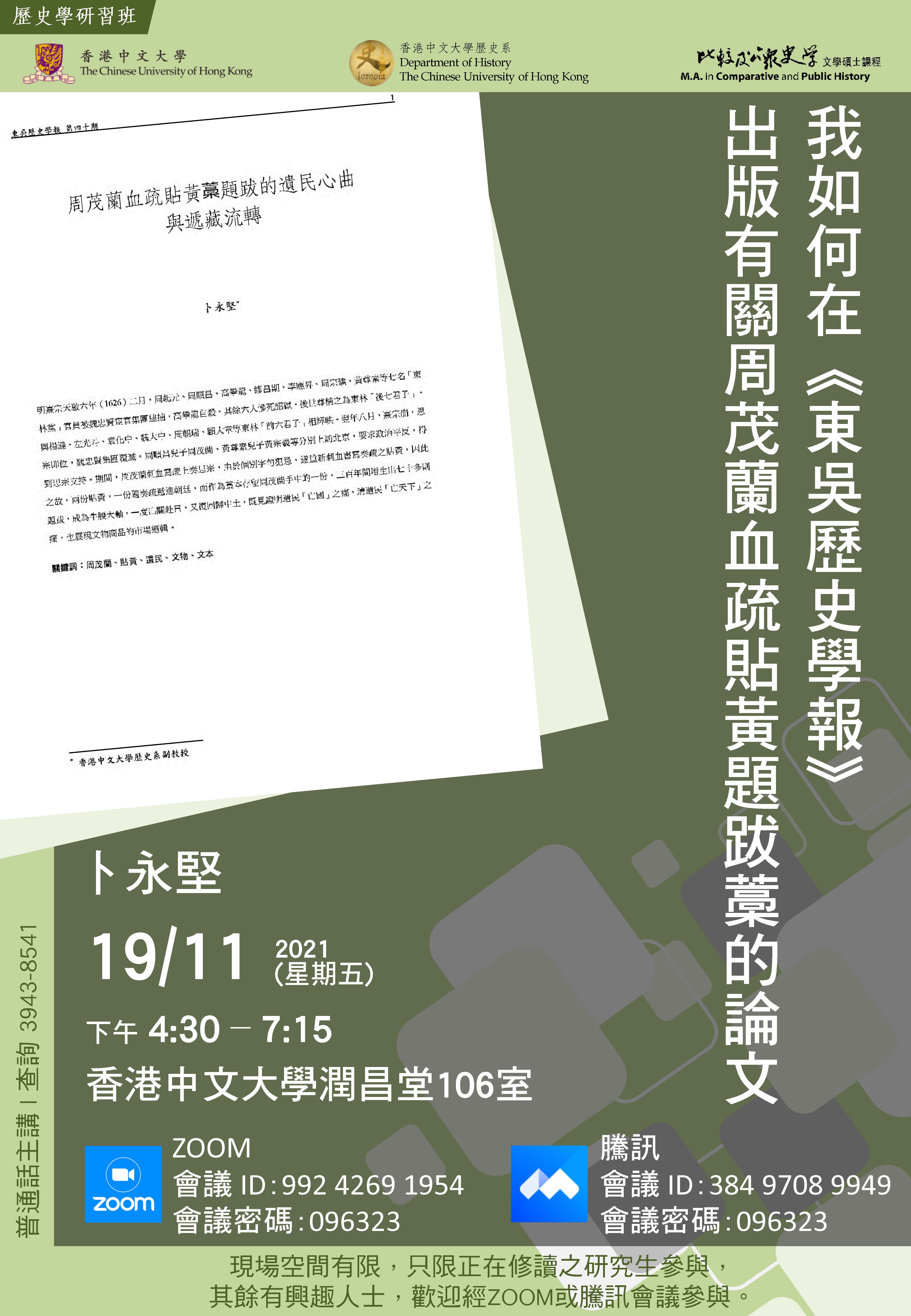 Graduate Seminar on Historiography: 我如何在《東吳歷史學報》出版有關周茂蘭血疏貼黃題跋藁的論文