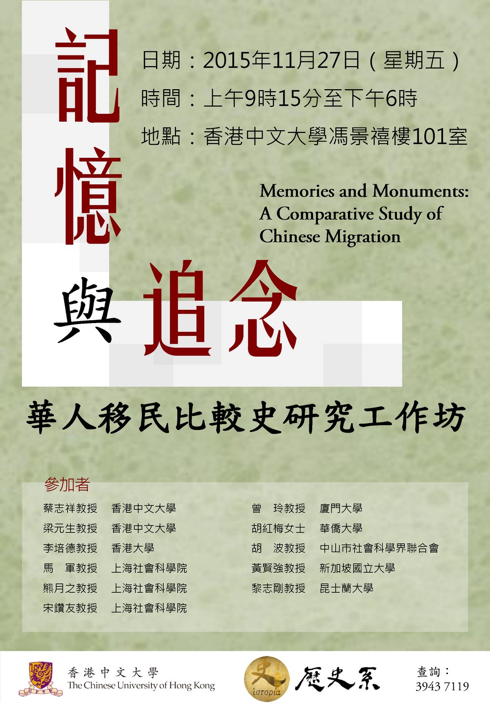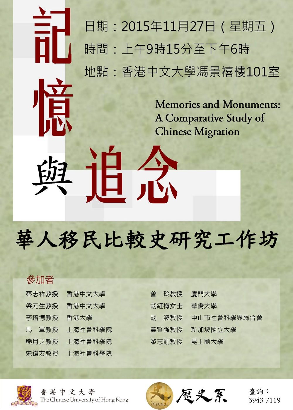 Academic Workshop for Memories and Monuments: A Comparative Study of Chinese Migration