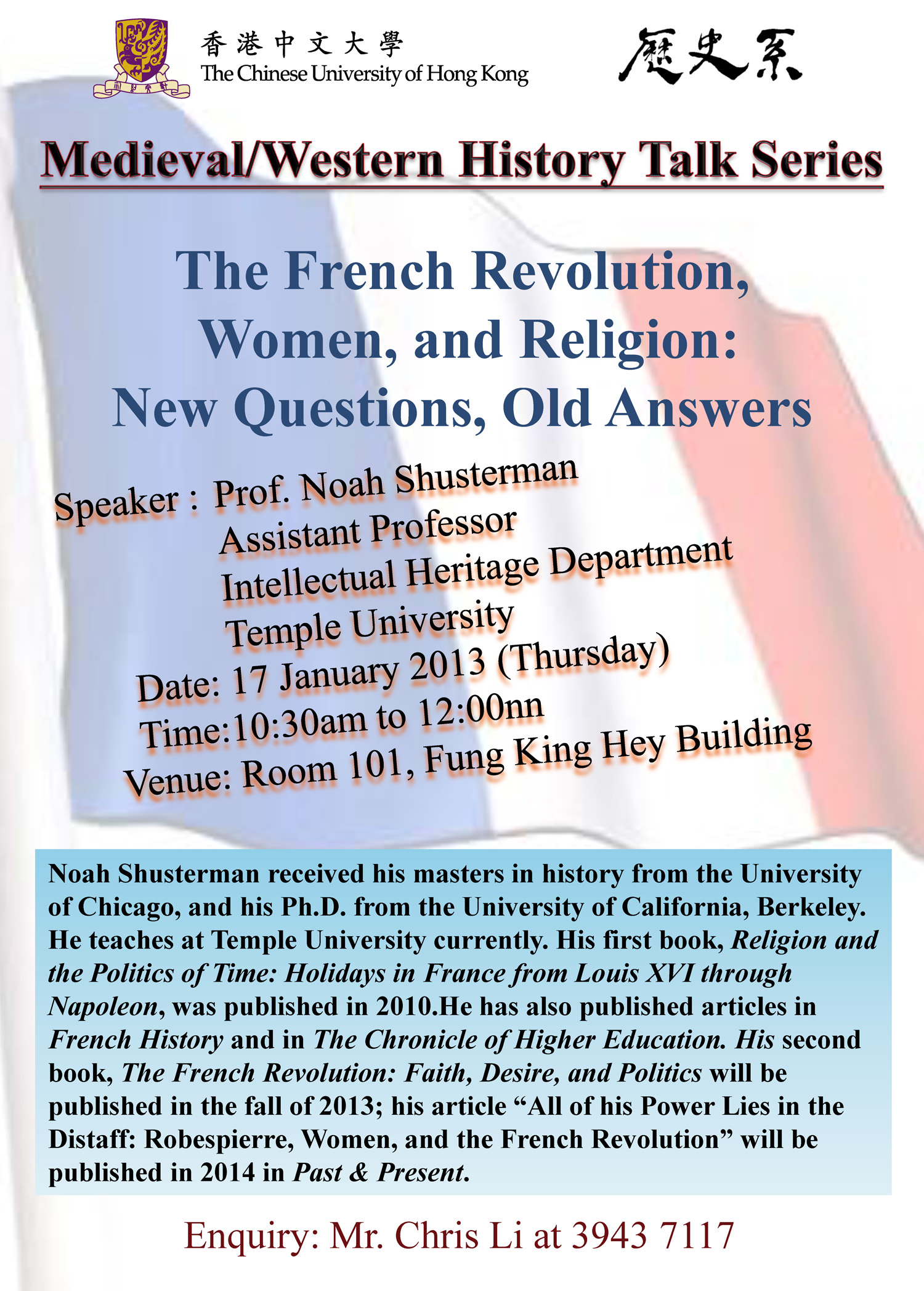 17 Jan 2013 10:30am - 12:00nn The French Revolution, Women, and Religion: New Questions, Old Answers Noah Shusterman