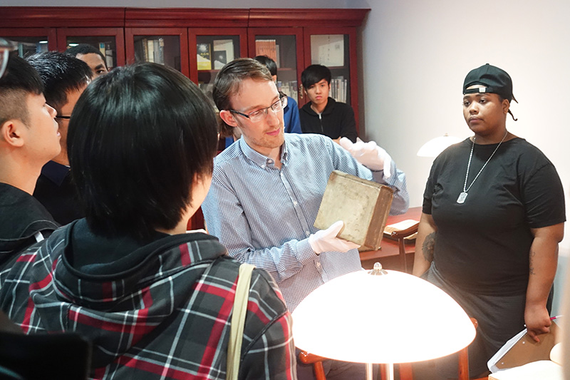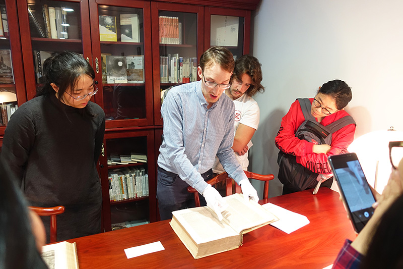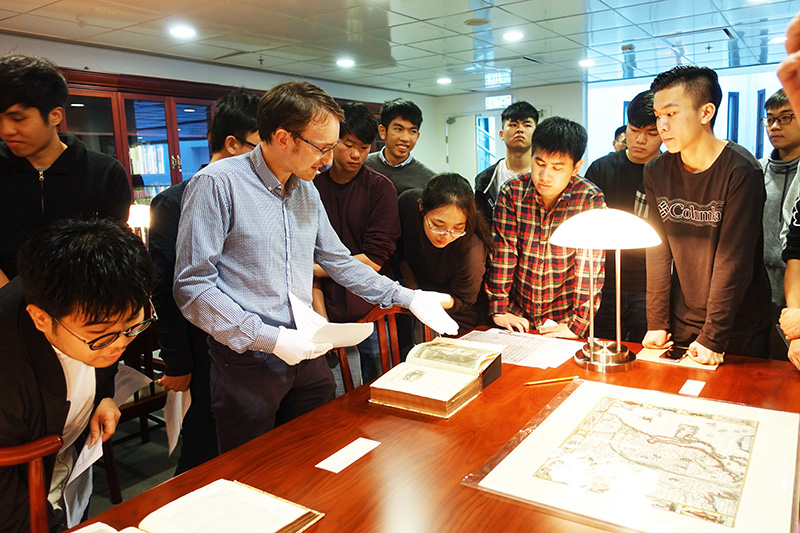 On 13 February 2019, Prof. Stuart MCMANUS took the students of HIST4306 “The West and the World: Early Modernity” on a trip to the Rare Book Room of the CUHK Library to examine Western rare books. There, Ms. LI Lai Fong, Head of the Special Collections, and other library staff generously set out a selection of books (including works of Shakespeare, Galen, Confucius (translated in French), etc.) printed in Europe between 1492 and 1750. The students very much enjoyed the opportunity to examine real historical sources related Western history and Chinese-Western relations.