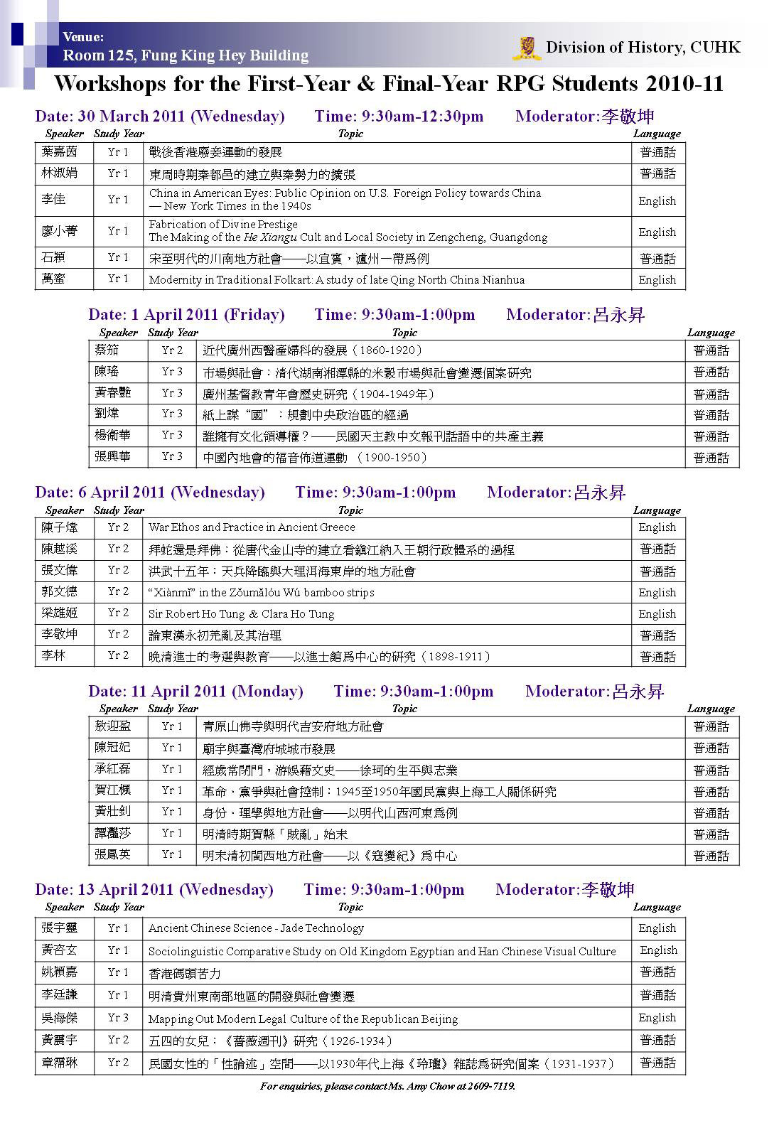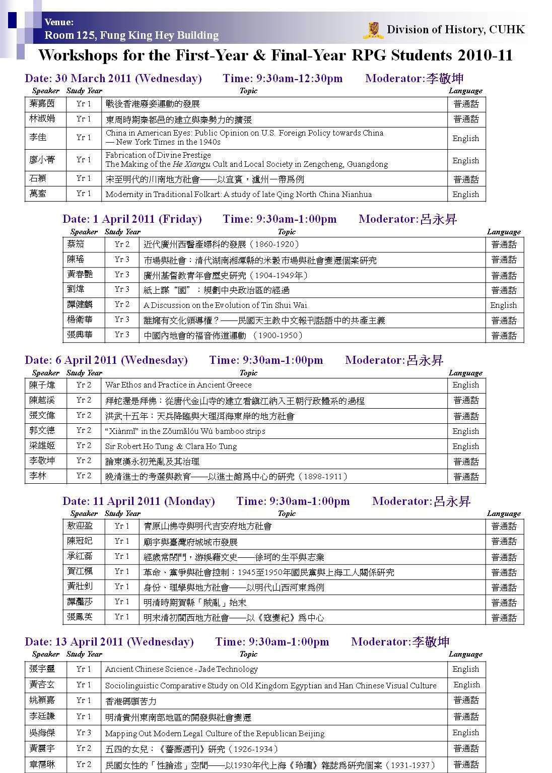 Workshops for the First-Year & Final-Year RPG Students 2010-11