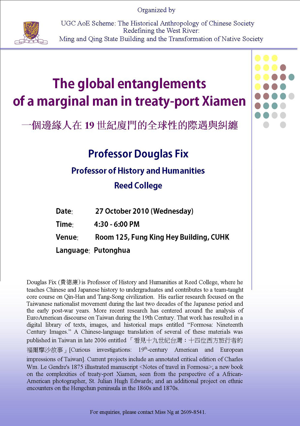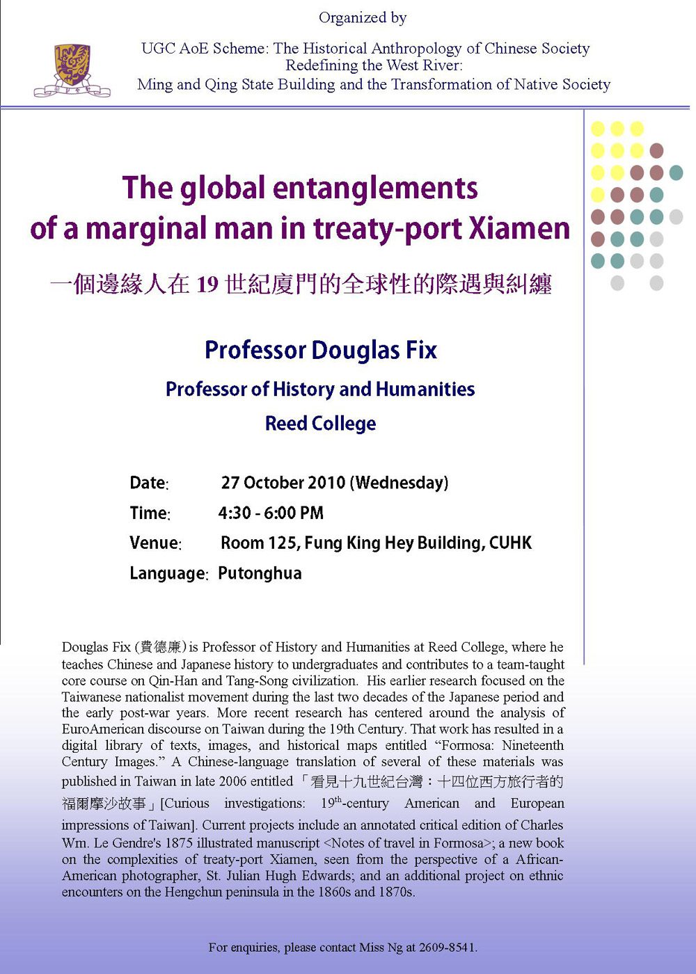 Topic: The global entanglements of a marginal man in treaty-port Xiamen