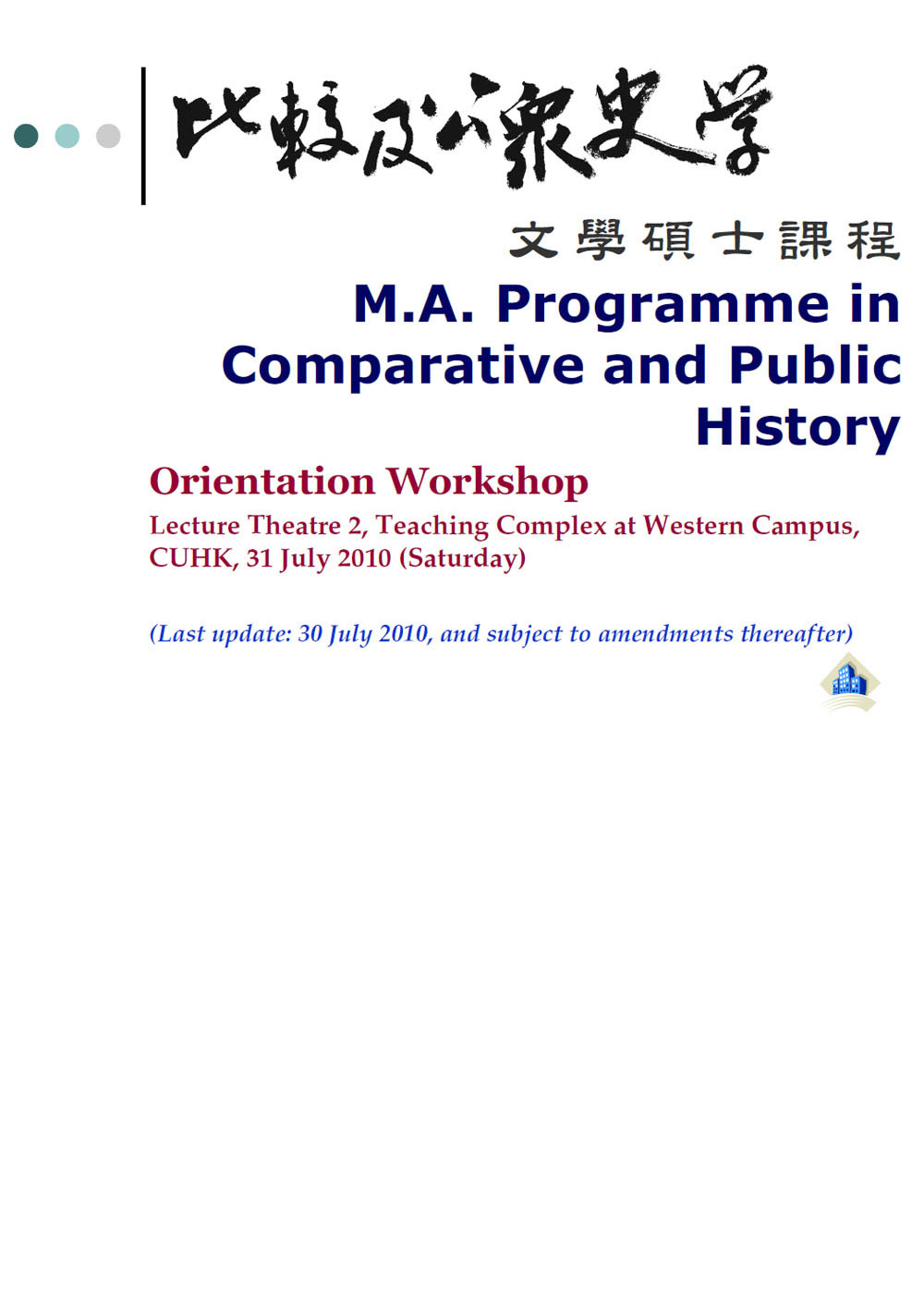 文學碩士課程迎新工作坊