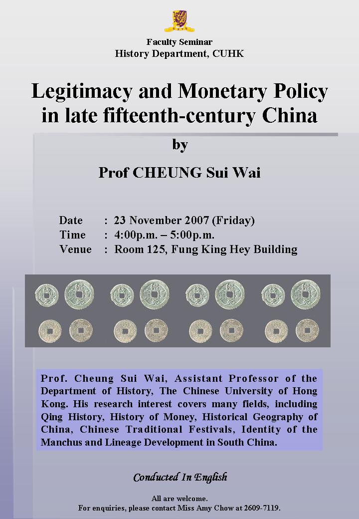 Legitimacy and Monetary Policy in late fifteenth-century China