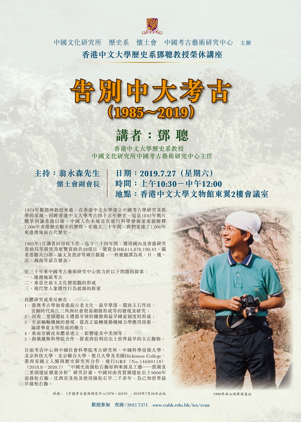 香港中文大學歷史系鄧聰教授榮休講座:告別中大考古 (1985-2019)