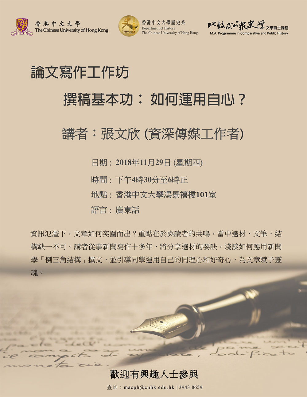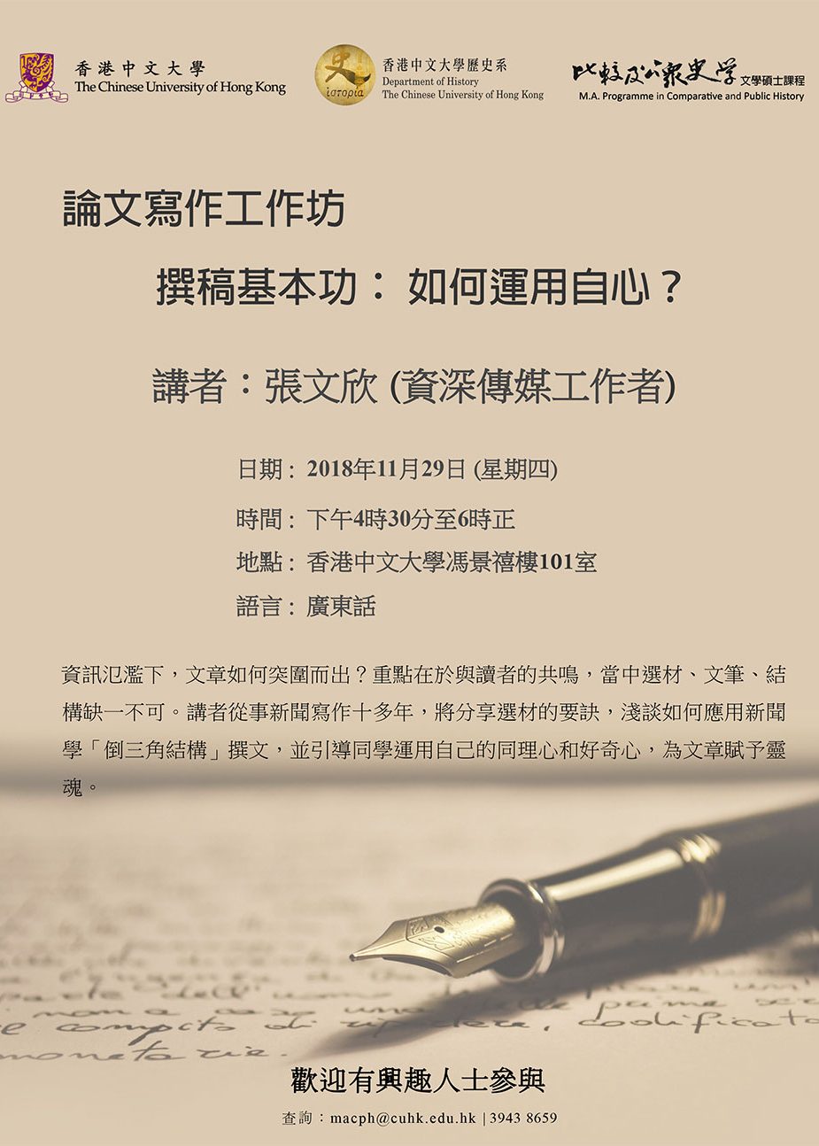 比較及公眾史學文學碩士課程諮詢講座