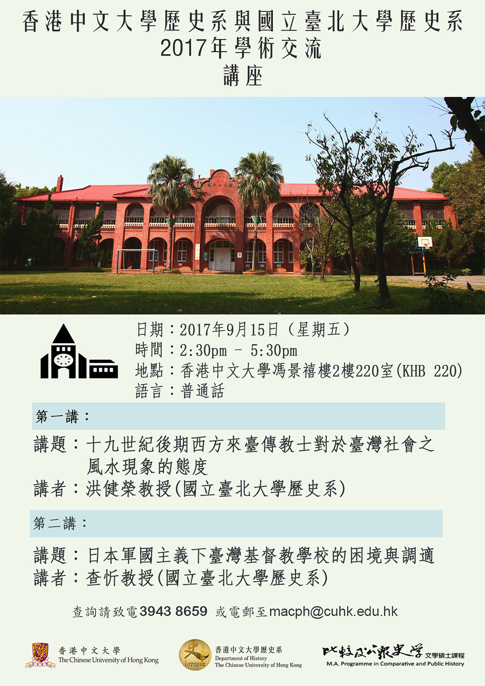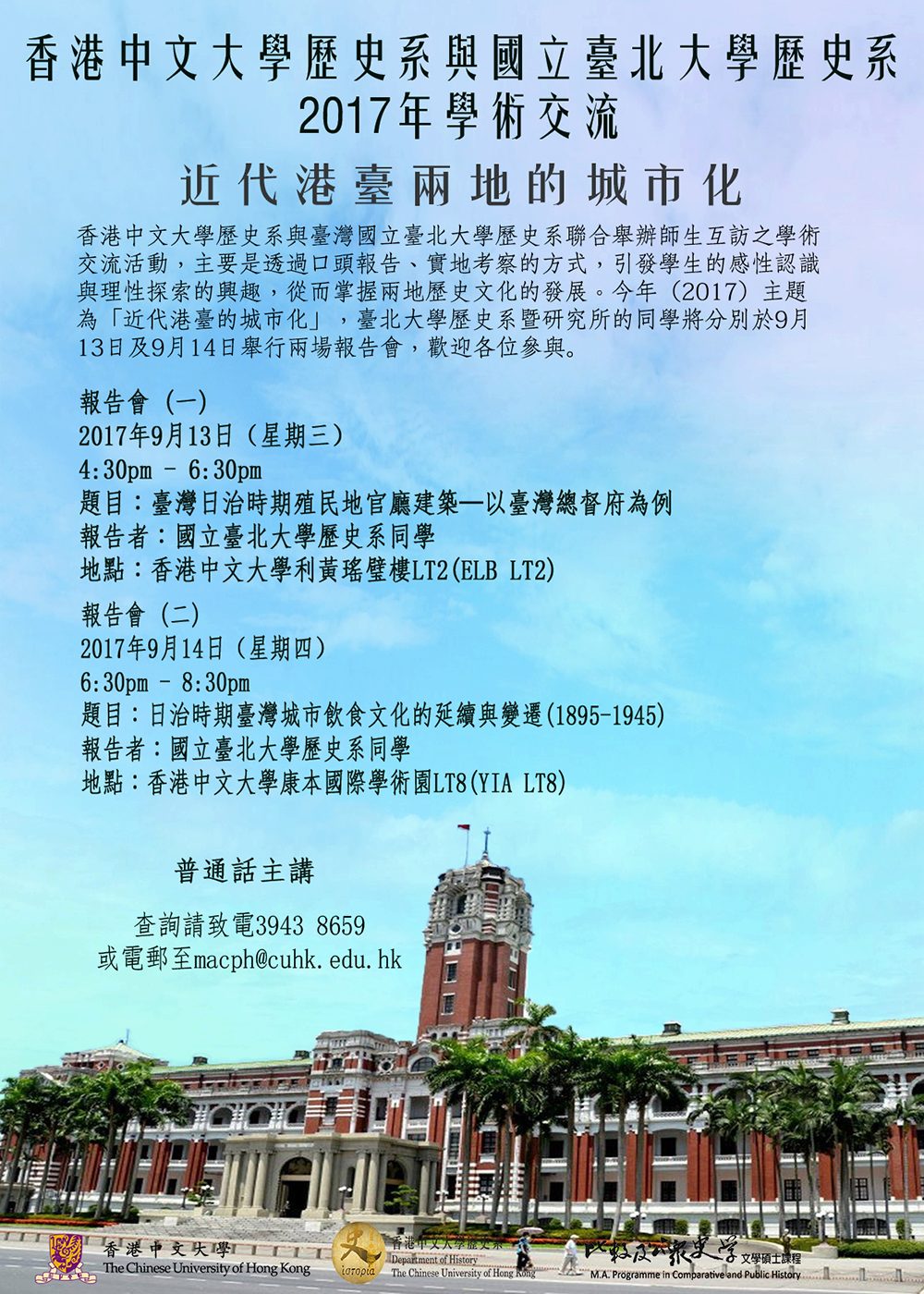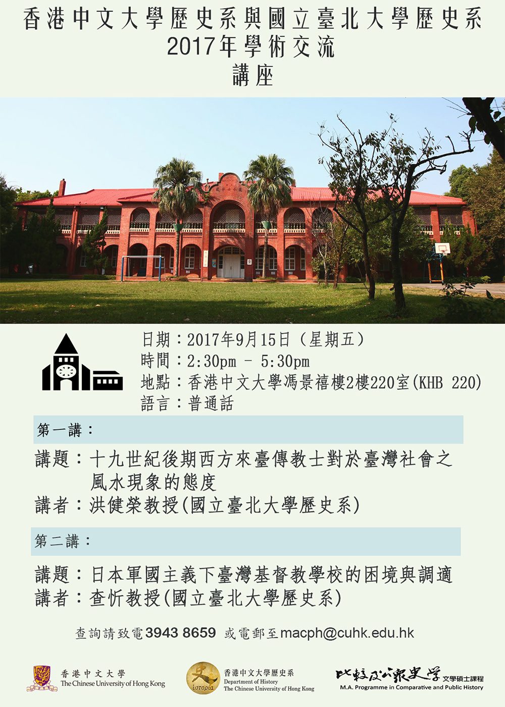 「香港中文大學歷史系與國立臺北大學交流」學術講座