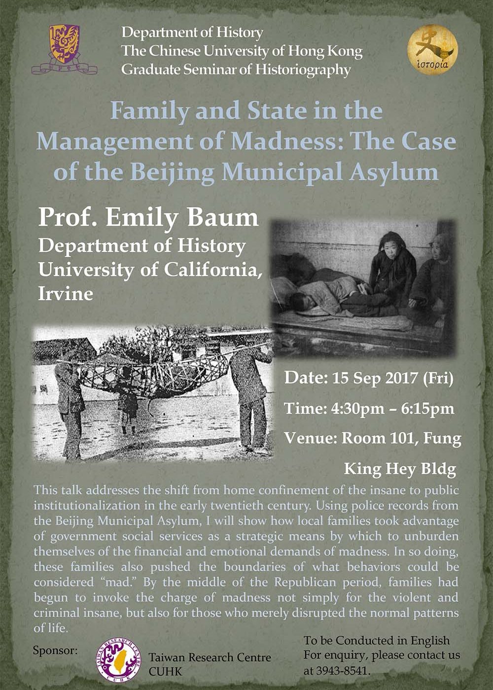 歷史學研習班 Family and State in the Management of Madness: The Case of the Beijing Municipal Asylum