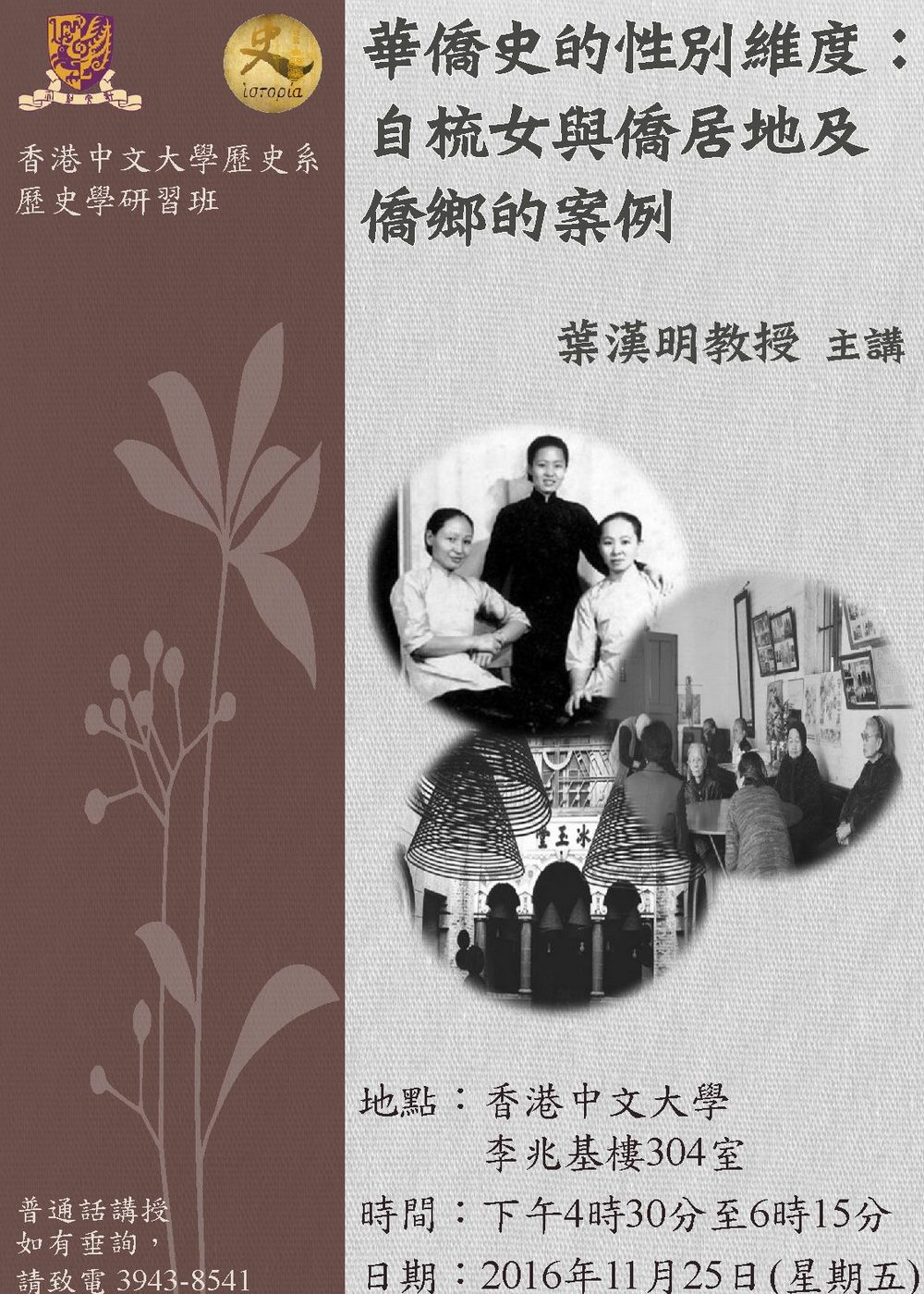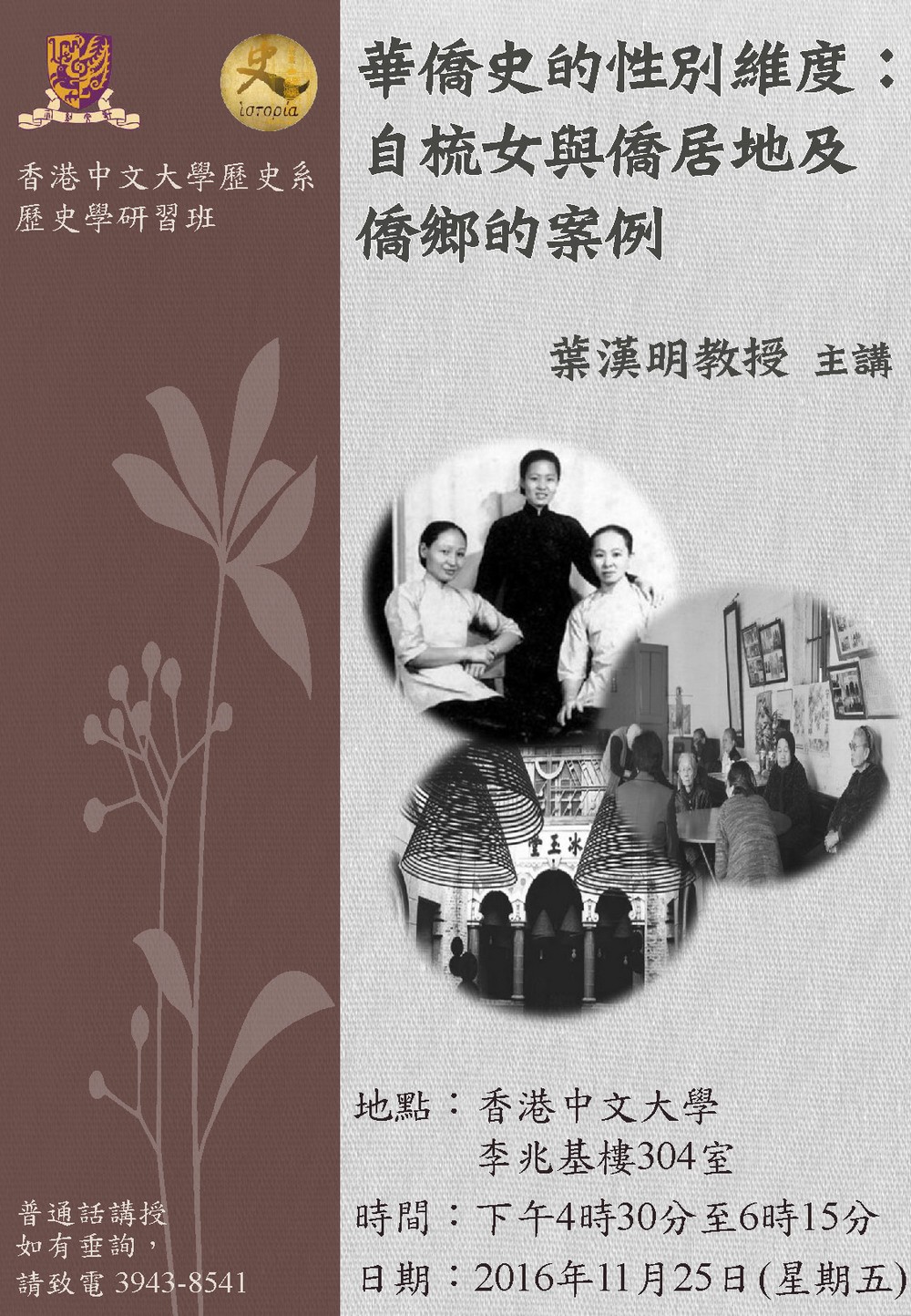 歷史學研習班 華僑史的性別維度:自梳女與僑居地及僑鄉的案例