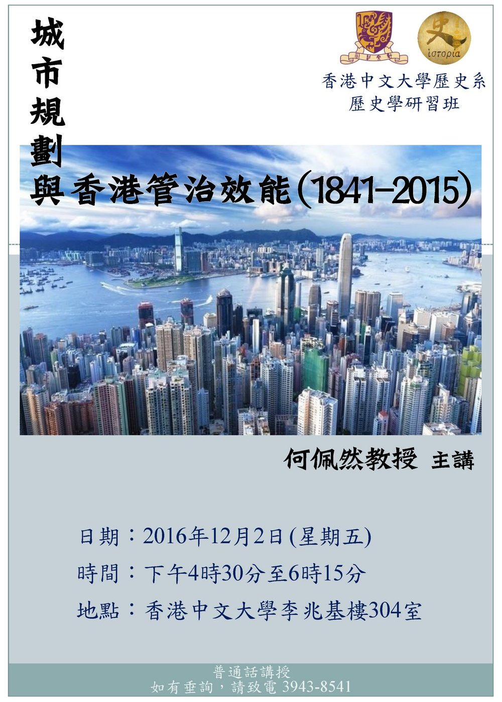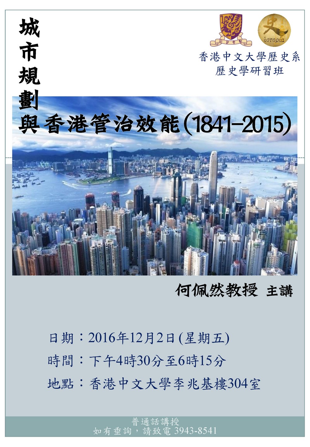 歷史學研習班 城市規劃與香港管治效能 (1841-2015)