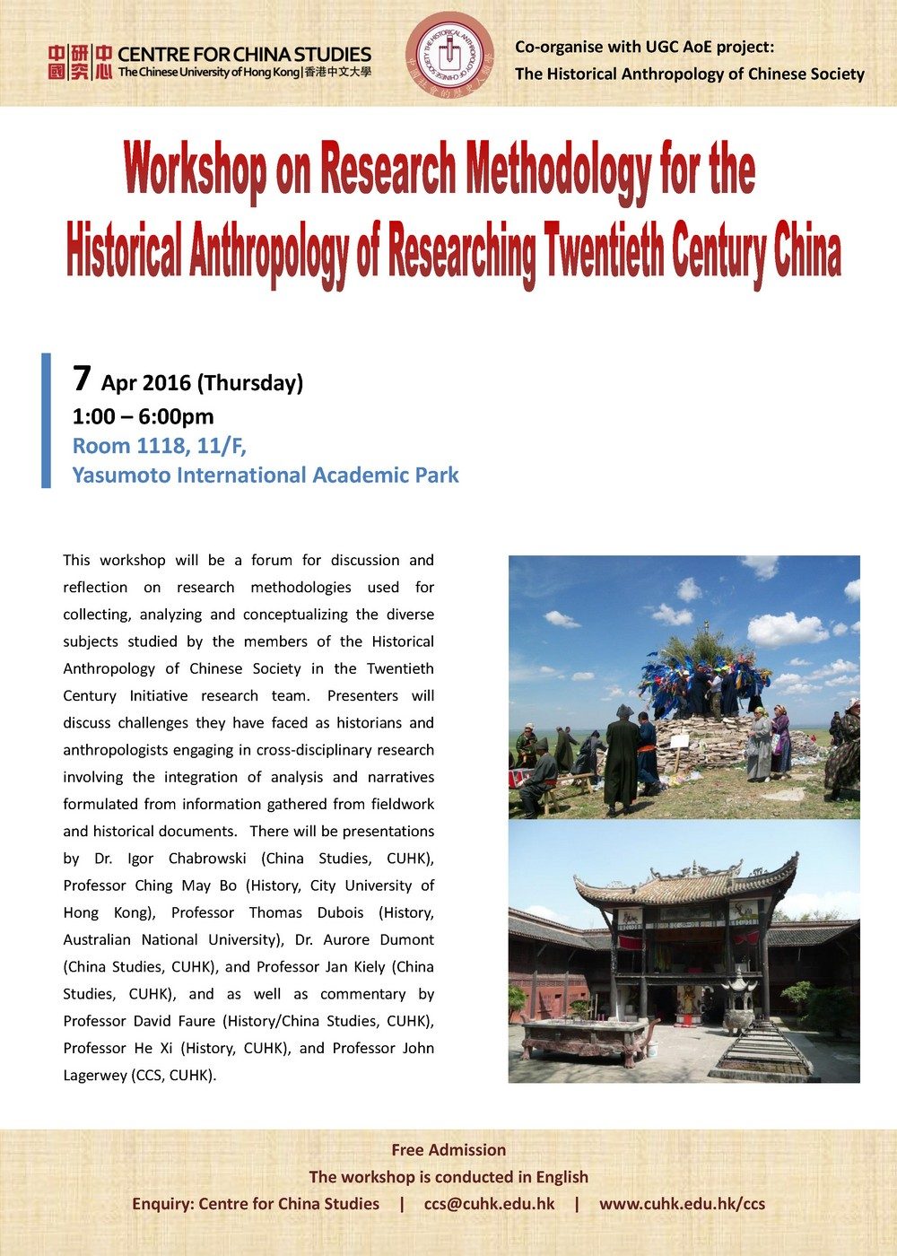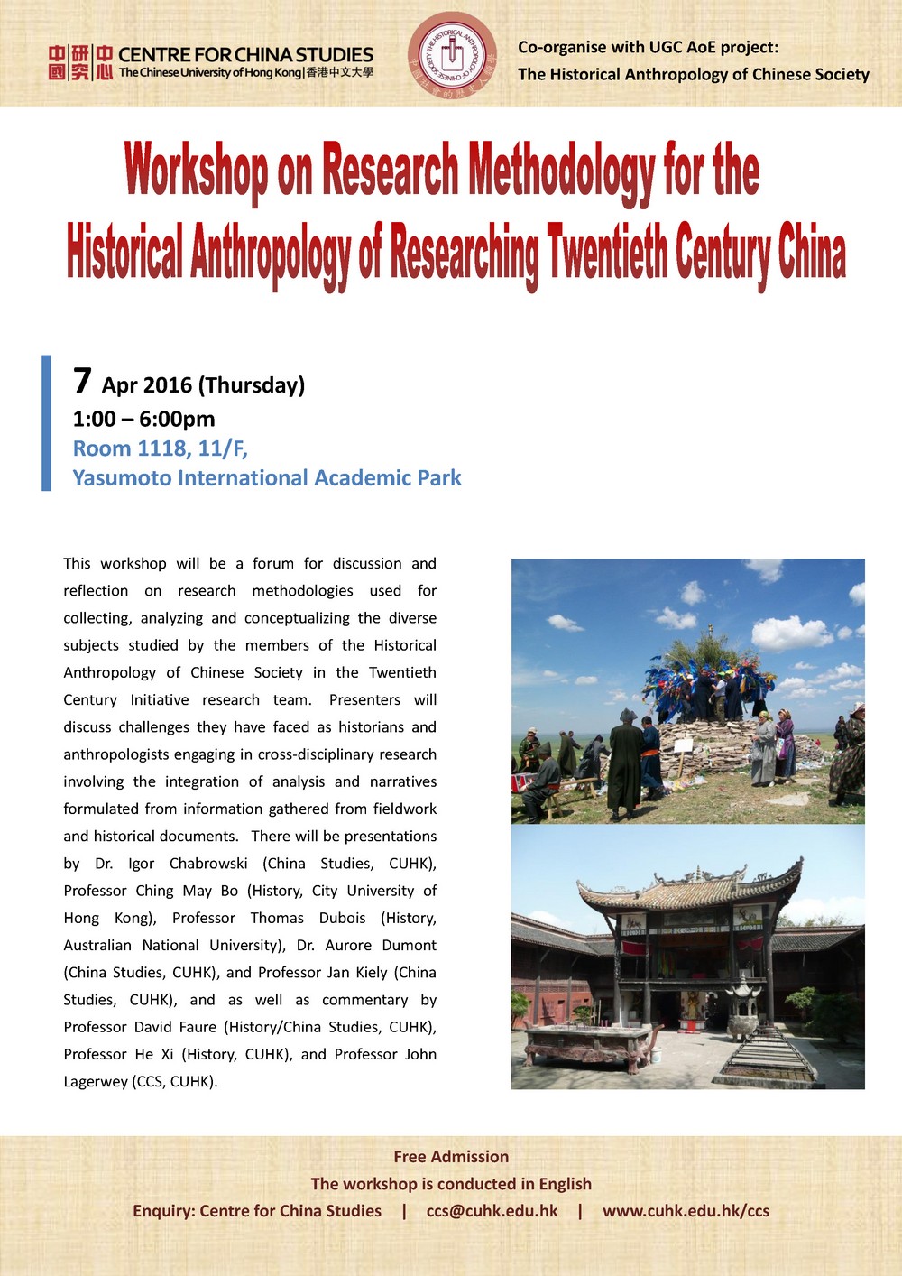 Workshop on Research Methodology for the Historical Anthropology of Researching Twentieth Century China