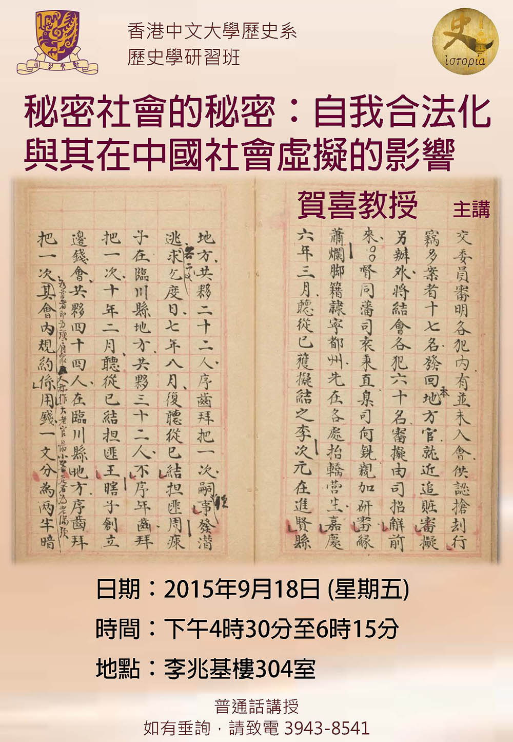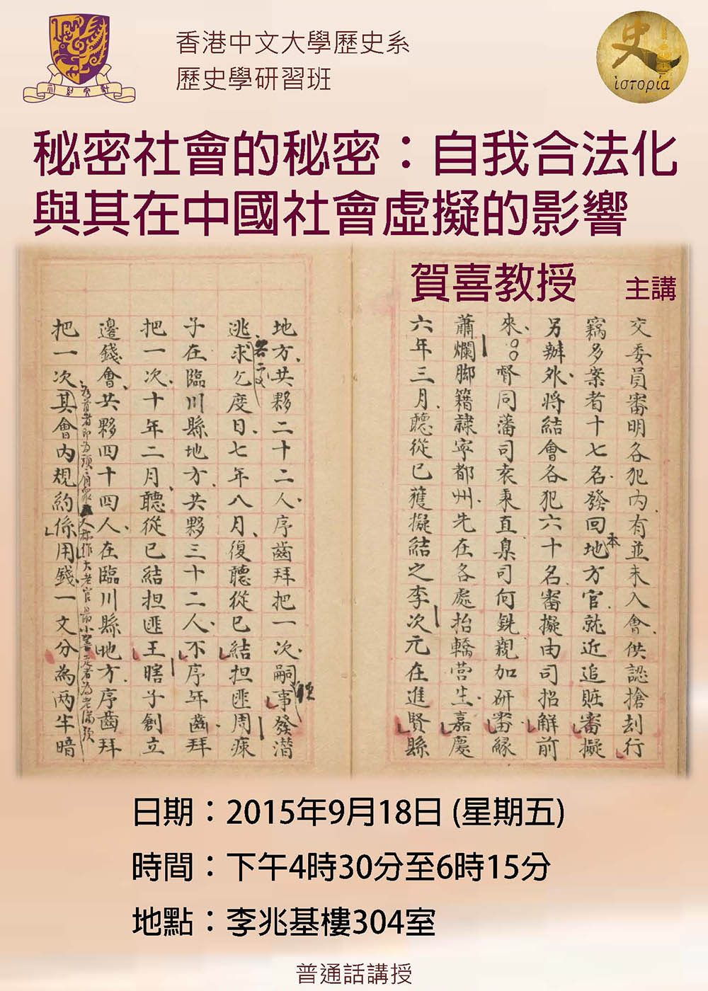 歷史學研習班 秘密社會的秘密:自我合法化與其在中國社會虛擬的影響