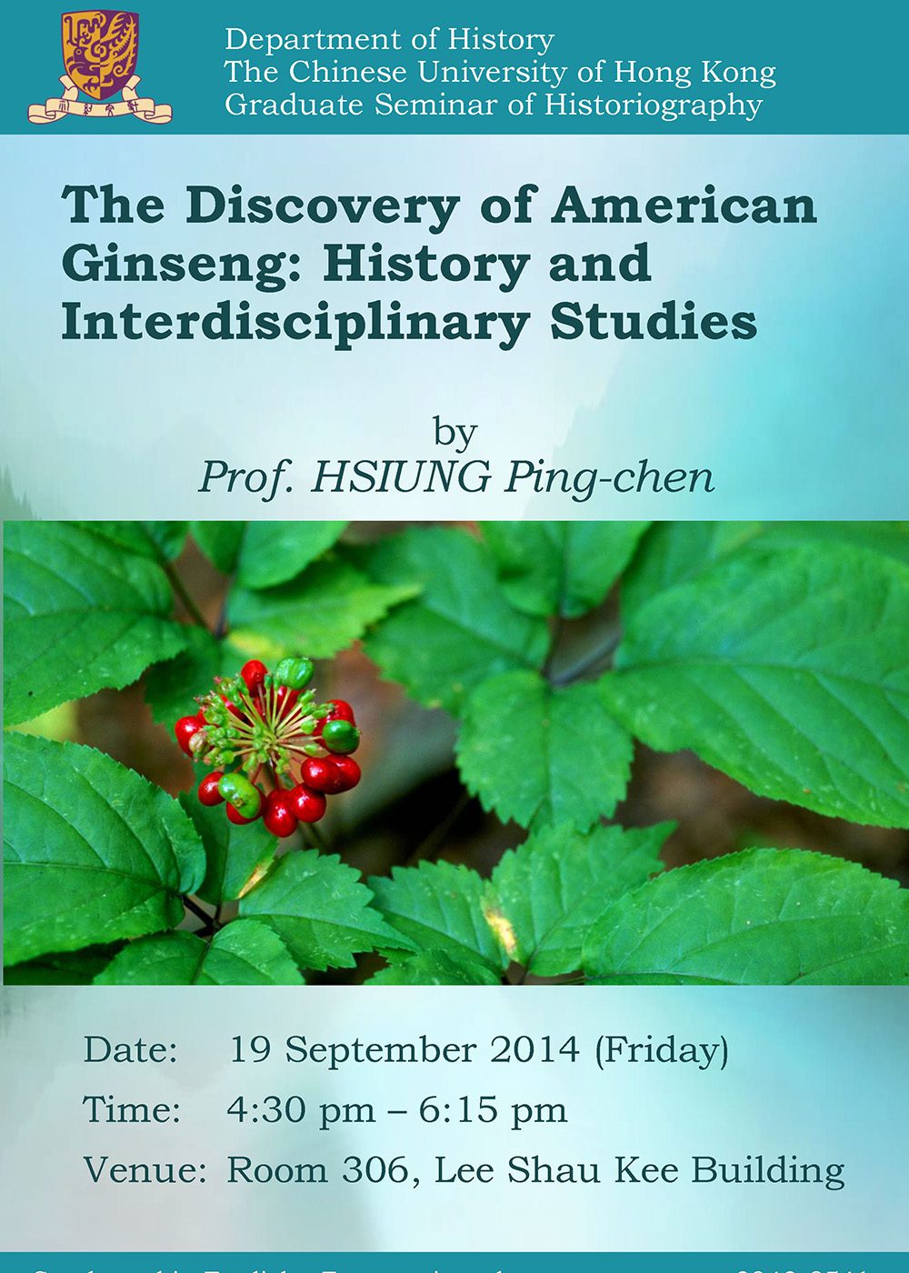 歷史學研習班 The Discovery of American Ginseng: History and Inter-disciplinary Studies