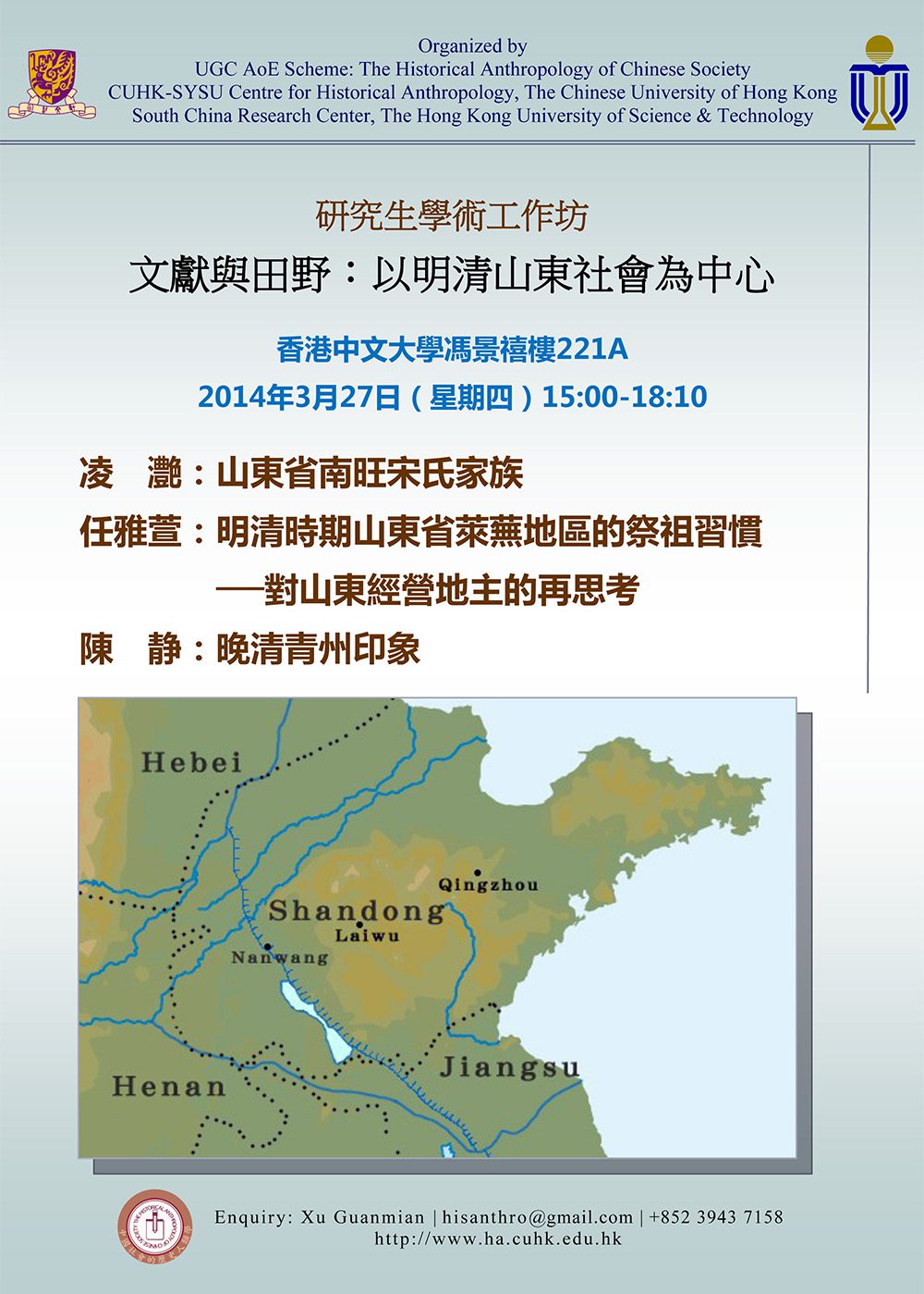 研究生學術工作坊 文獻與田野:以明清山東社會為中心