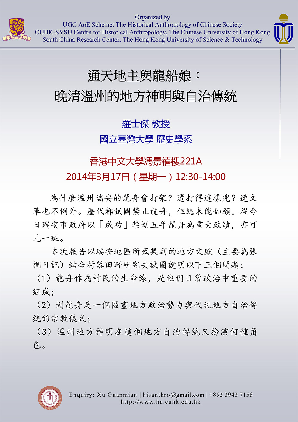 通天地主與龍船娘:晚清溫州的地方神明與自治傳統