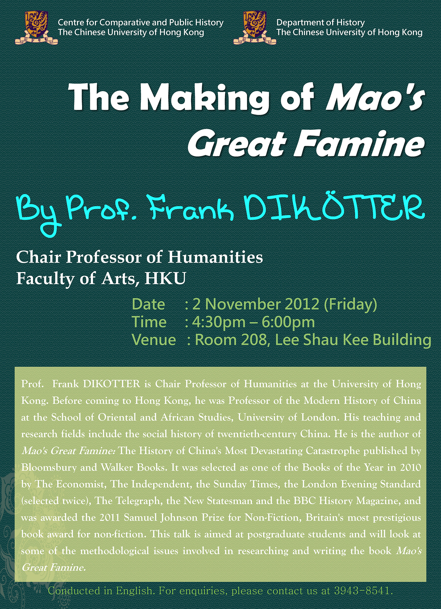 2012年11月2日 4:30pm - 6:00pm The Making of Mao’s Great Famine Frank DIKOTTER