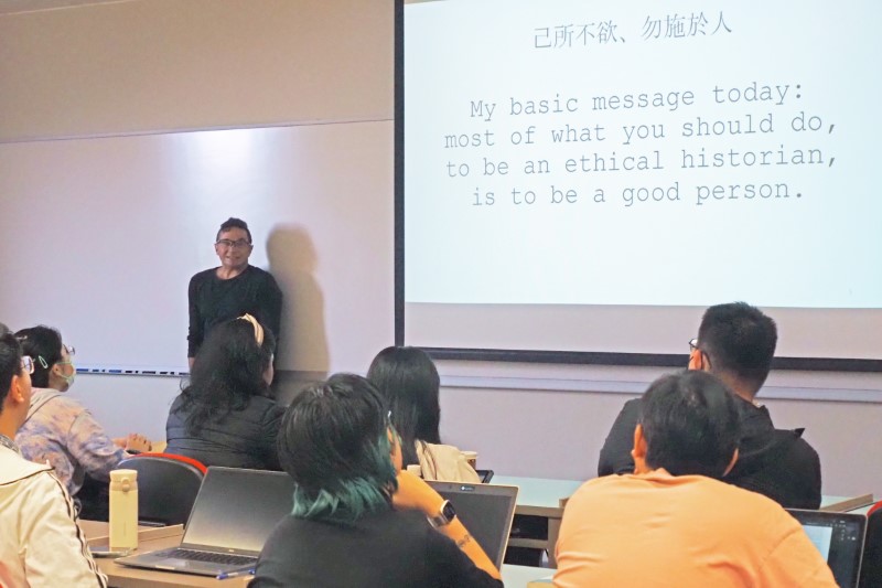 孫達文教授於2023年11月24日主持了一場以「做有道德的公民,有研究操守的歷史研究者」為題的工作坊。孫達文教授以提問為何要舉辦研究操守工作坊來開展討論。通過分享他在芝加哥大學和加州伯克萊大學的學習經歷,傳達了自己對歷史學研究操守的信念是做一個好人、誠實的人,並多次強調誠信在學術研究的重要。
