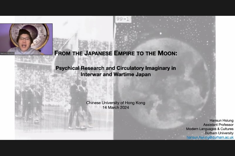 應中大比較及公眾歷史研究中心邀請,杜倫大學現代語言及文化學院的熊漢順教授於2024年3月14日以「從日本帝國到月球:戰前和戰時日本的通靈研究與流動性想象」為題進行講座。講者採用「流動性想象」這一全新視角,重新審視了全球史研究中時興的「流動」概念。所謂「流動性想象」,是指歷史上的個人或群體以各種方式解讀跨時空的聯繫和變動。講座以1910年代在日本興起的通靈研究為案例,因為這類研究設想時空距離可以通過諸如「透視」和「念寫」的方法以精神力量消除。通過追溯心理學家福來友吉 (1869–1952) 與靈媒三田光一 (1883–1943) 的合作,熊教授強調了通靈研究對日本帝國計劃的貢獻,即從理論上通過「精神旅行」建構一個日本創造的超越日常「世界」的「宇宙帝國」。