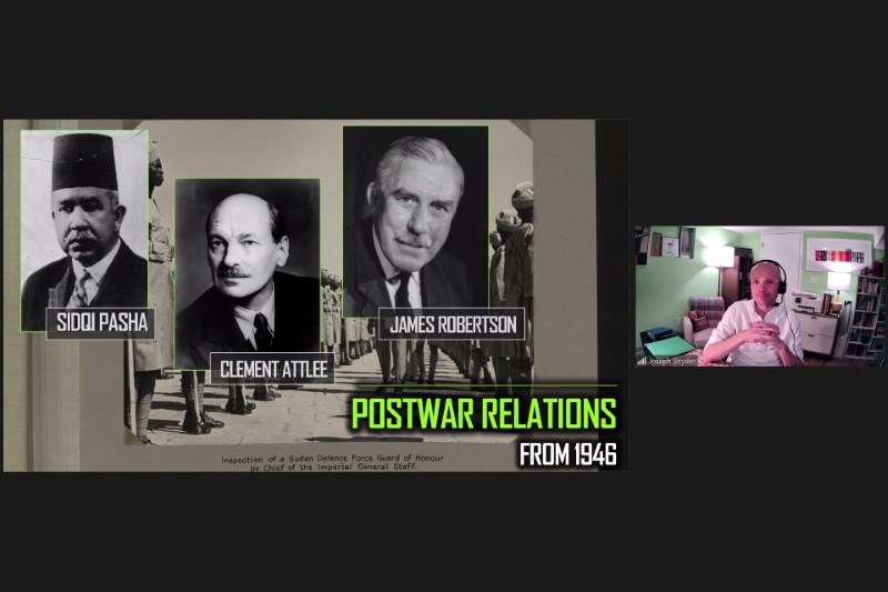 應中大比較及公眾歷史研究中心邀請,東南密蘇里州立大學歷史及人類學系的約瑟夫·斯奈德教授教授於2024年4月5日以「蘇丹與英埃關係:戰後非洲民族主義、冷戰和西方對外政策」為題進行講座。講者深入討論了冷戰初期蘇丹在複雜的地緣政治局勢中所處的動態地位。英國和埃及政府都將蘇丹自決問題作為他們鞏固自己外交立場的戰略要點。斯奈德教授闡明,在阿以關係日趨緊張的情況下,英國試圖利用蘇丹的地位來維持其在蘇伊士運河地區的軍事據點;而埃及則在民族主義狂熱的支配下,堅持只有在英國停止在運河區的軍事活動後方可討論蘇丹的未來。講座最後探討了1951年英國政府在蘇丹問題上與埃及意見相左這一關鍵但被低估的決定,該決定奠定了英國加速撤出蘇丹和蘇伊士區域的基礎。