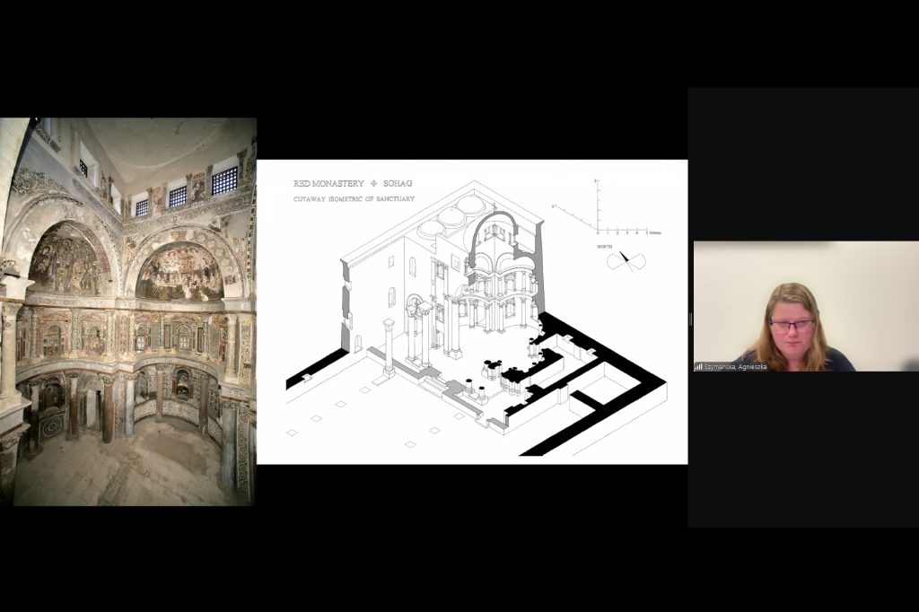 里奇蒙大學藝術與藝術史的安格涅絲卡·西曼斯卡教授應比較及公眾歷史研究中心邀請,於11月6日發表題為「古埃及晚期的神聖觀賞:作為精神體驗的修道院繪畫」的講座。講座探討了古埃及晚期的修道院禱告空間如何設計和繪製以支持希臘式的「沉思儀式」(theōria),使修道士達到神秘的視覺與沉浸狀態。講者重點介紹了六世紀的紅色修道院,闡述其保存完好的三錐形結構如何創造了一個充滿神聖圖畫的強烈精神氛圍的空間,將崇拜轉化為深刻的精神朝聖。這種特殊的結構設計使修道士能夠深入參與基督教苦行目標,例如沉思、學習和對上帝的記憶。通過這一分析,希曼斯卡教授強調這些埃及修道院空間如何借用地中海古典元素來促進個人崇拜及對神聖和永恆生命的共同追求。