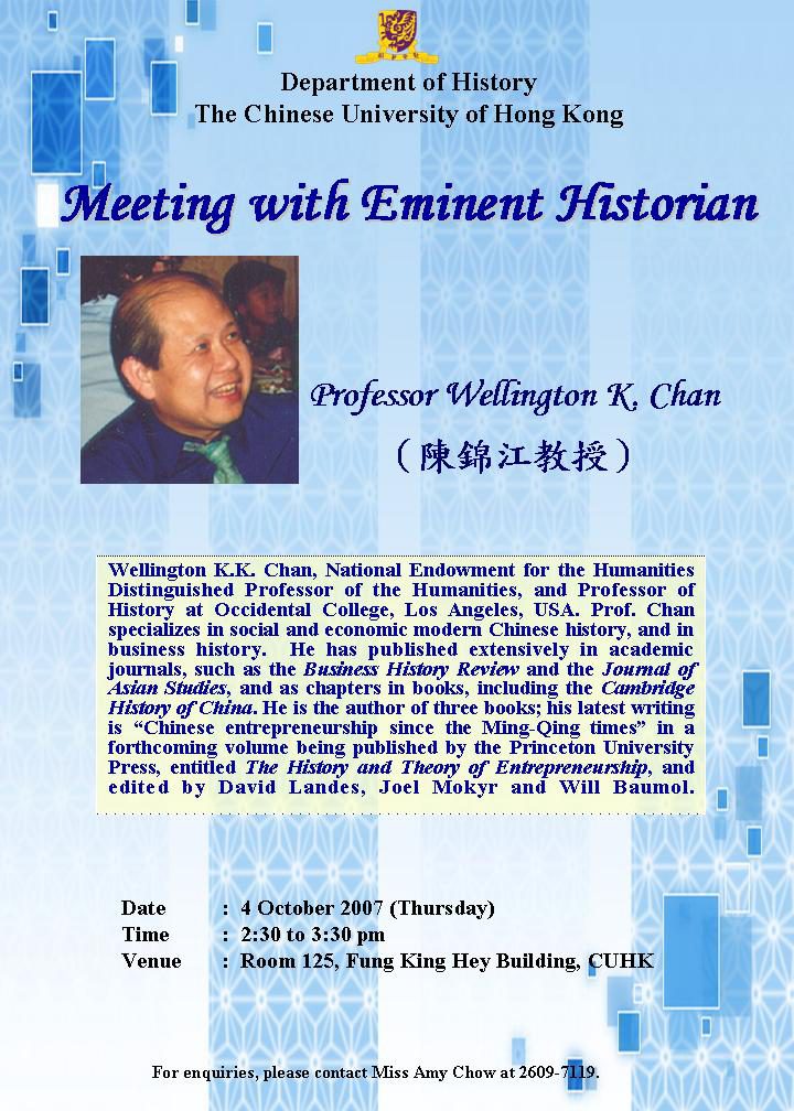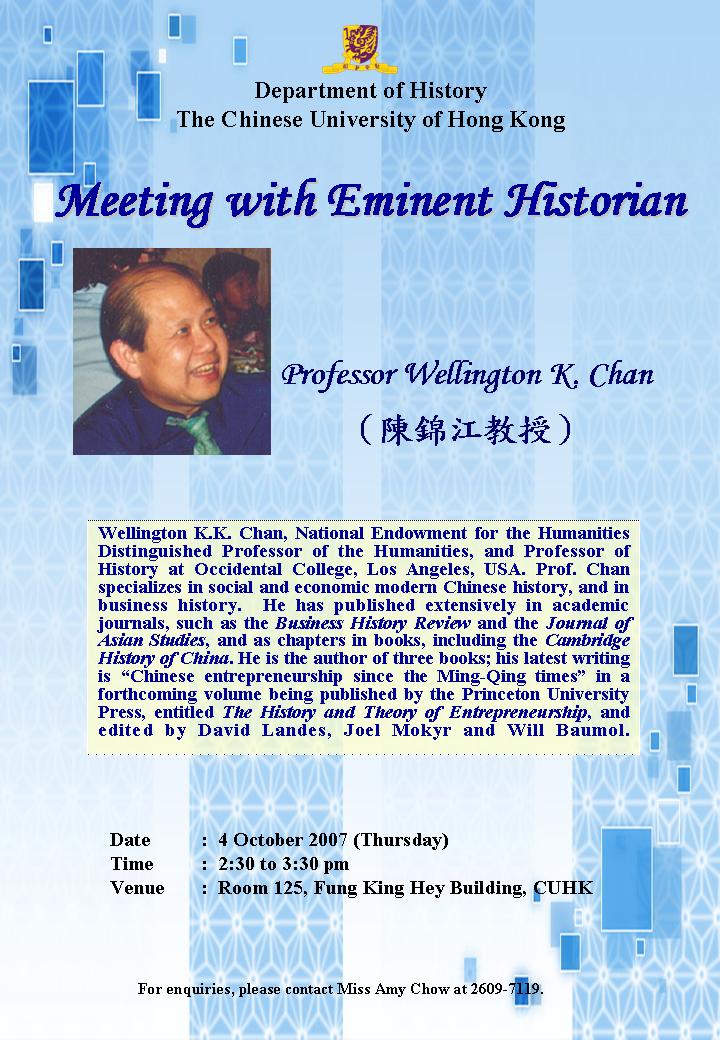 Meeting with Eminent Historian: Prof. Wellington K. Chan
