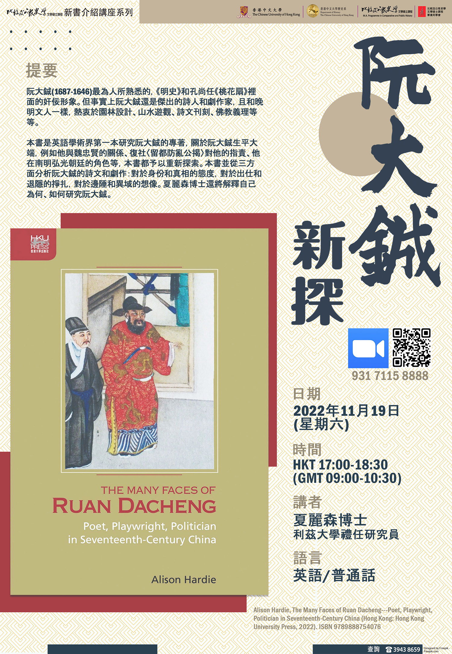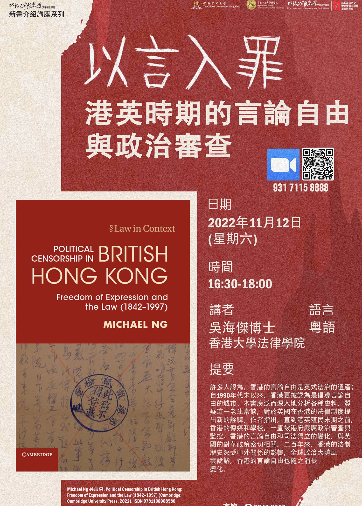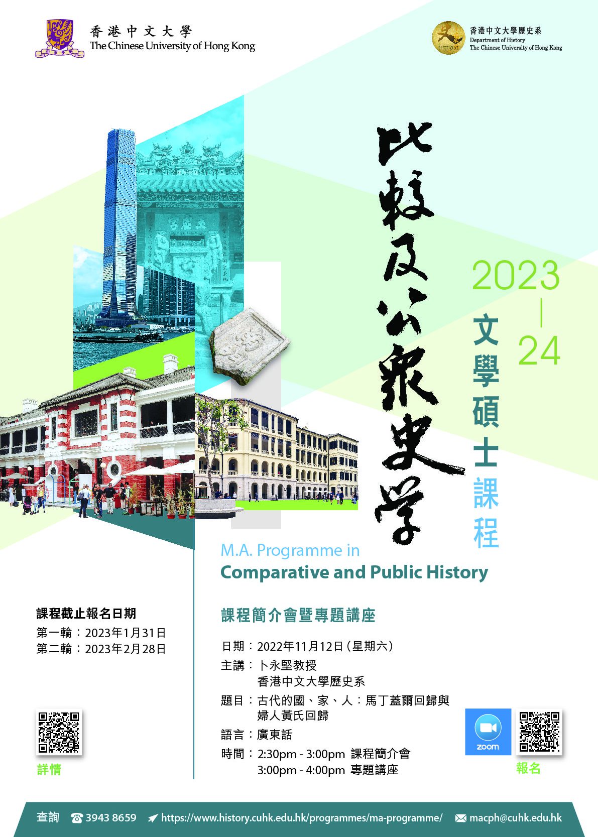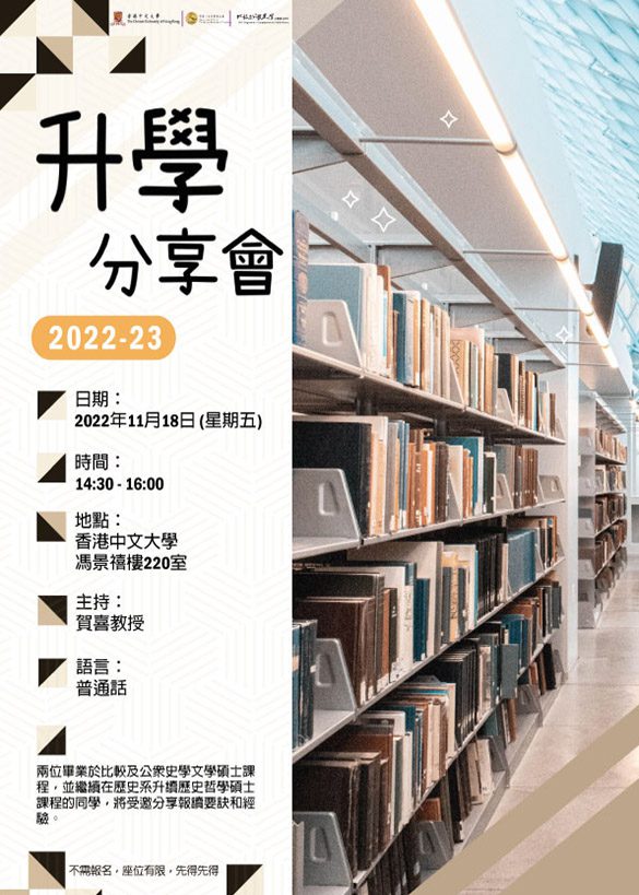 比較及公眾史學文學碩士課程網上課程簡介日暨專題講座