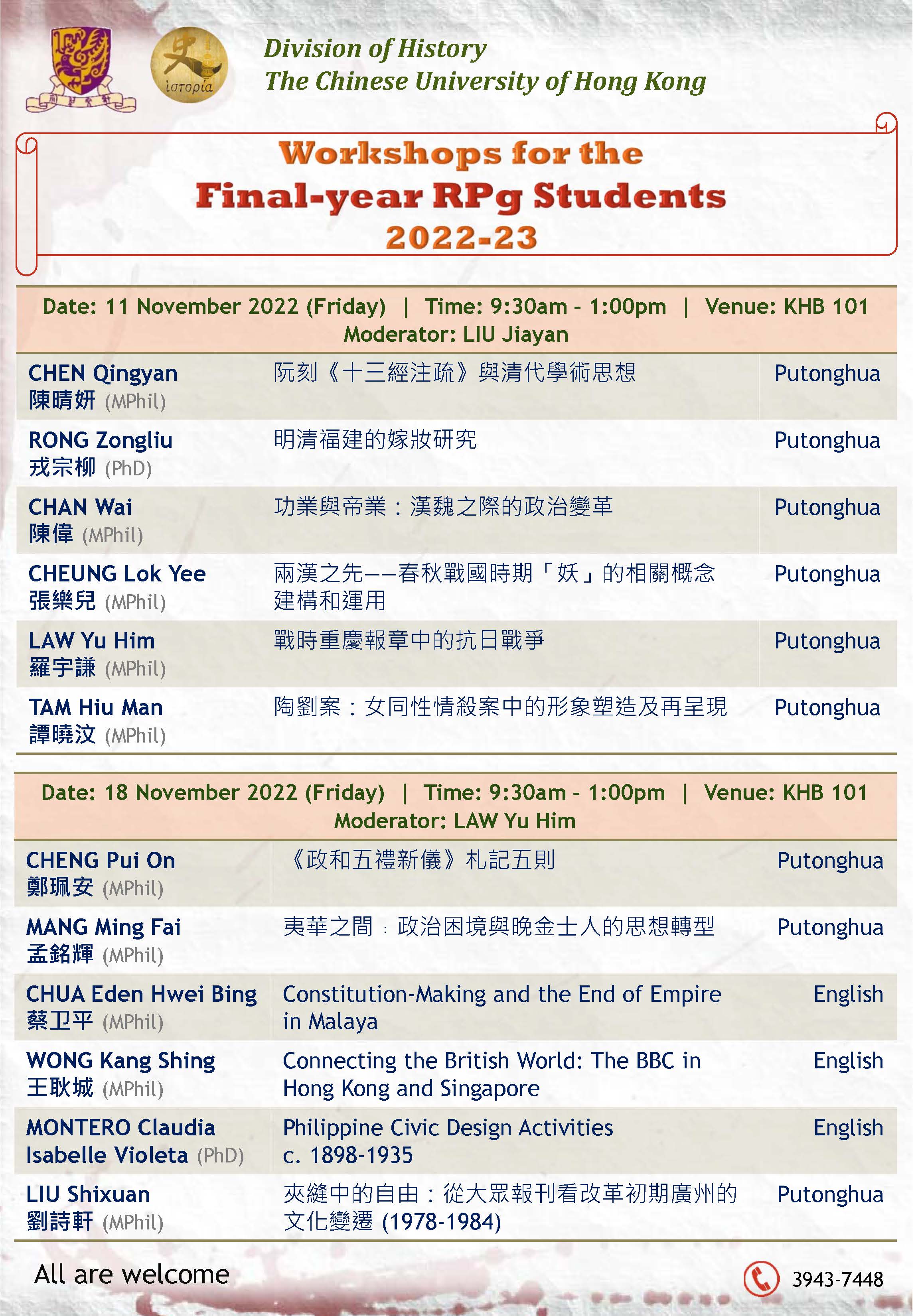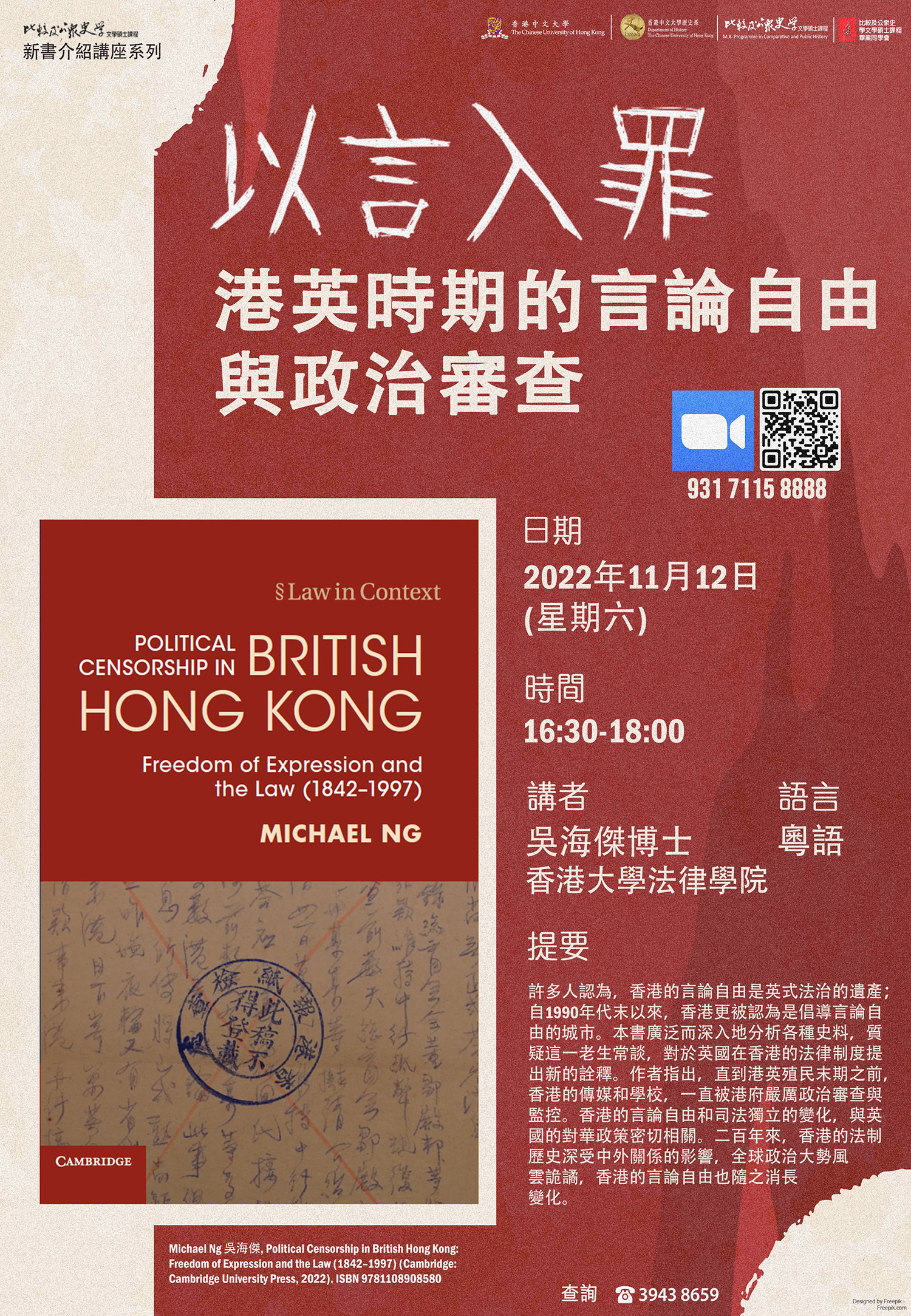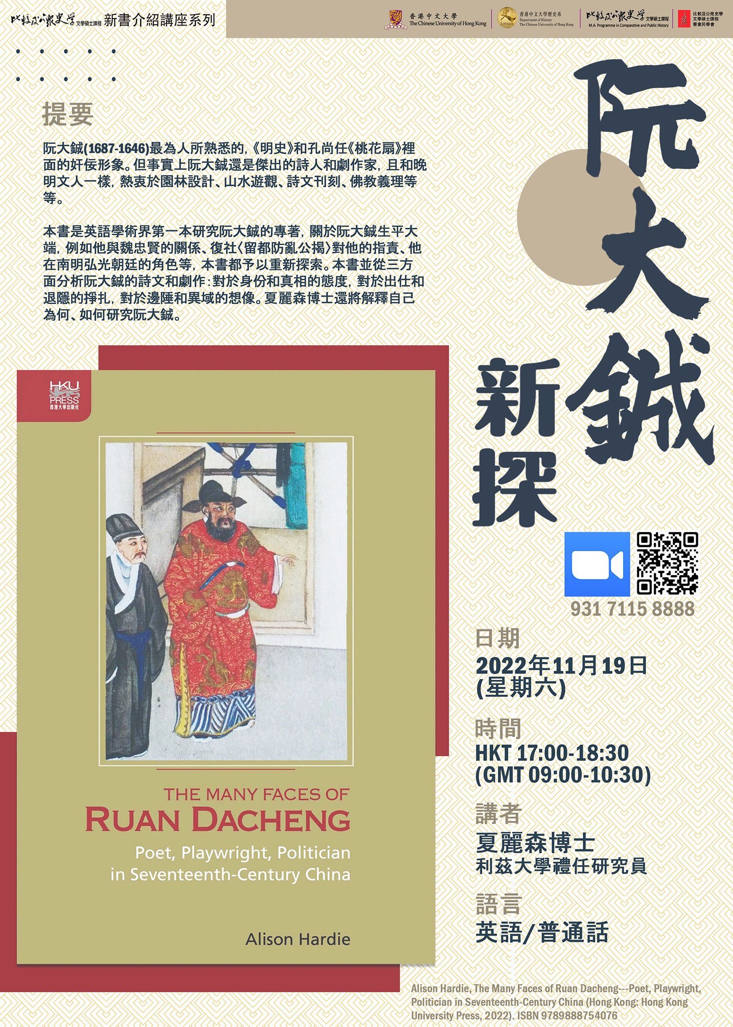 比較及公眾史學文學碩士課程網上課程簡介日暨專題講座