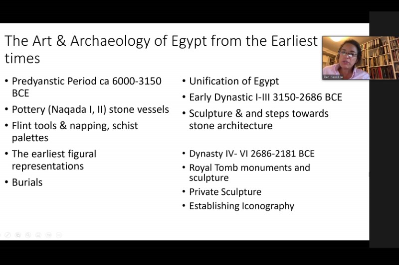 2022年10月13日,應中大比較及公眾歷史研究中心的邀請,歐洲博物館界領軍人物Eleni VASSILIKA博士進行了題為「從上古時代到羅馬時期的埃及藝術與建築」的講座。講座之初,VASSILIKA博士例出古今埃及藝術和考古學的發展。她繼而展示一系列前王朝陶器如器皿和小雕像等讓觀眾熟悉埃及的祭祀和喪葬制度。在王朝初期 (公元前3150-2686年),大量的國王坐像標誌著上下埃及的統一。從古王國 (公元前2686-2181) 到第一中間時期 (公元前2181-2140),則出現大量金字塔和與王室相關的雕像,呈現埃及王朝建築和裝飾的發展與標化。與此同時,寺廟亦供奉私人雕塑。在阿蒙霍特普三世、阿肯那頓和圖坦卡蒙統治之後,托勒密王朝和羅馬時期的藝術特徵見證了埃及藝術的盛世。VASSILIKA博士用豐富的圖像說故事,並在結語指出,埃及始終與外界隔絕,是其與生俱來的文化封閉性所致。