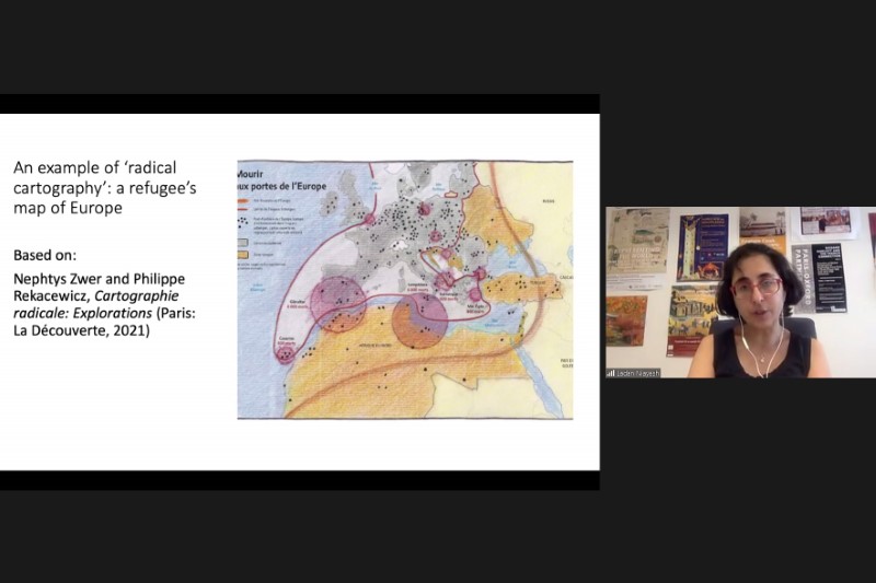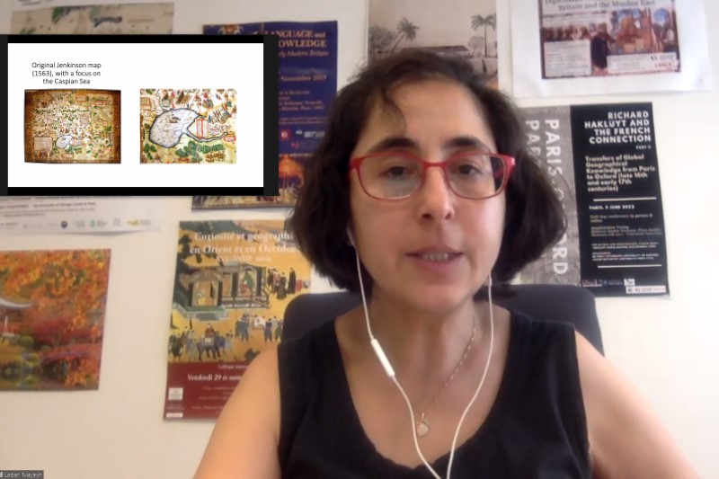 應中大比較及公眾歷史研究中心邀請,巴黎西岱大學英美研究系的拉丹·尼亞耶什教授於9月20日以「戰區製圖與反製圖:十六世紀中葉英國人對伏爾加河邊境的看法」為題進行演講。演講首先介紹了關於以色列與巴勒斯坦衝突中領土變化的不同觀點。然後,演講者深入探討分析征服區地圖來收集商業和領土活動交叉點的各種方法。具體而言,她使用了一張難民的歐洲地圖來說明「激進製圖學」的概念。誠如其所述,透過了解伏爾加河沿岸前往里海和中亞的外交和貿易活動,英國的俄國公司代理人發現自己捲入了沙皇的帝國建設項目。最後,她提出俄羅斯與韃靼互相影響的地理和歷史邊緣、英國特工的旅行記事以及他們持有的伏爾加河地區地圖可以作為對抗湮滅的案例研究。