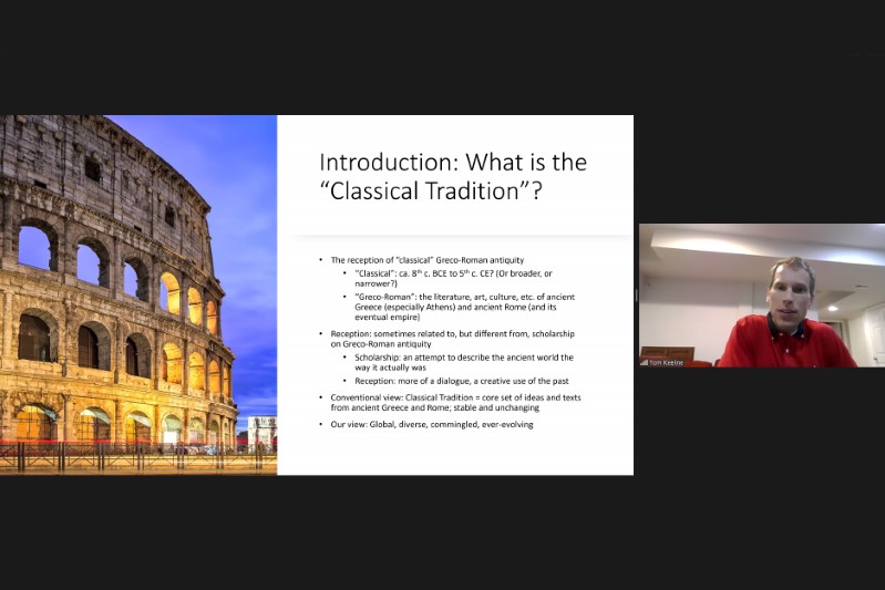 應中大比較及公眾歷史研究中心邀請,聖路易華盛頓大學古典學系湯瑪斯·基林教授於2024年4月18日在以「尋找『西方文明』」爲題進行講座。基林教授認爲,所謂的「西方古典傳統」並非原封不動承襲自古希臘羅馬時期,而是與「非西方」的文化接觸後不斷變化,成為文化融合的產物。講座由三個案例組成,分別從詞源學、宗教學和思想史的角度切入。第一個例子追溯了原產於華南的橙和「橙色 (orange)」一詞進入歐洲語言傳統的過程。第二個例子關注中世紀時期在基督教世界耳熟能詳的聖人故事——貝爾拉姆與約瑟伐特。基林教授指出,該故事源自梵文的佛陀釋迦牟尼的故事,經由各種古代西亞語言而轉譯到希臘文和拉丁文,聖人約瑟伐特就是佛陀。第三個案例圍繞阿拉伯學者對傳承亞里士多德思想的貢獻,譬如12世紀阿拉伯學者阿威羅伊對亞里士多德的評論集被納入中世紀經院哲學和文藝復興思想中。在講座最後,基林教授再次强調了文化接觸對古典傳統的重要意義。